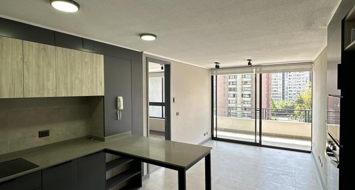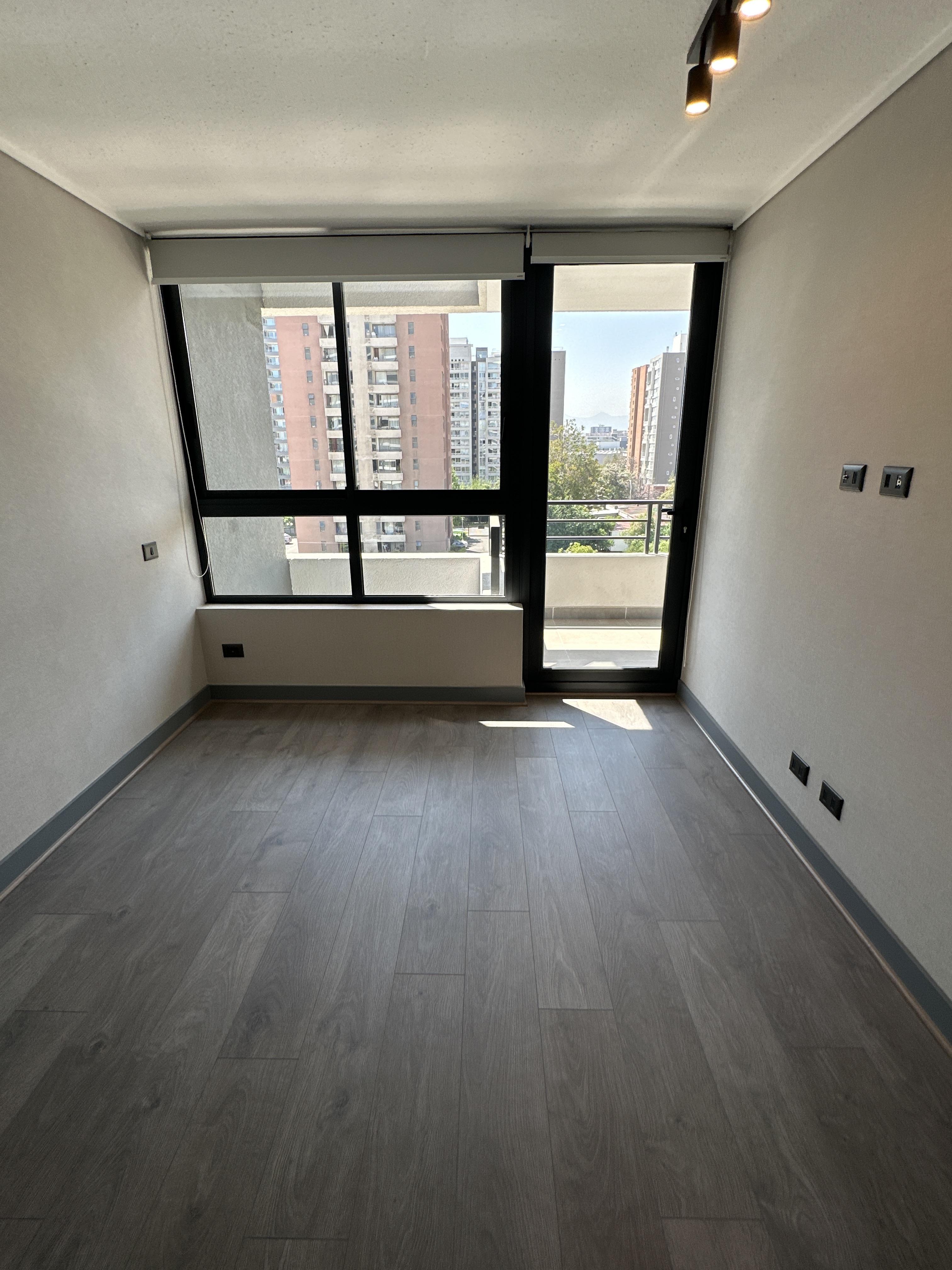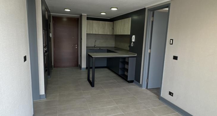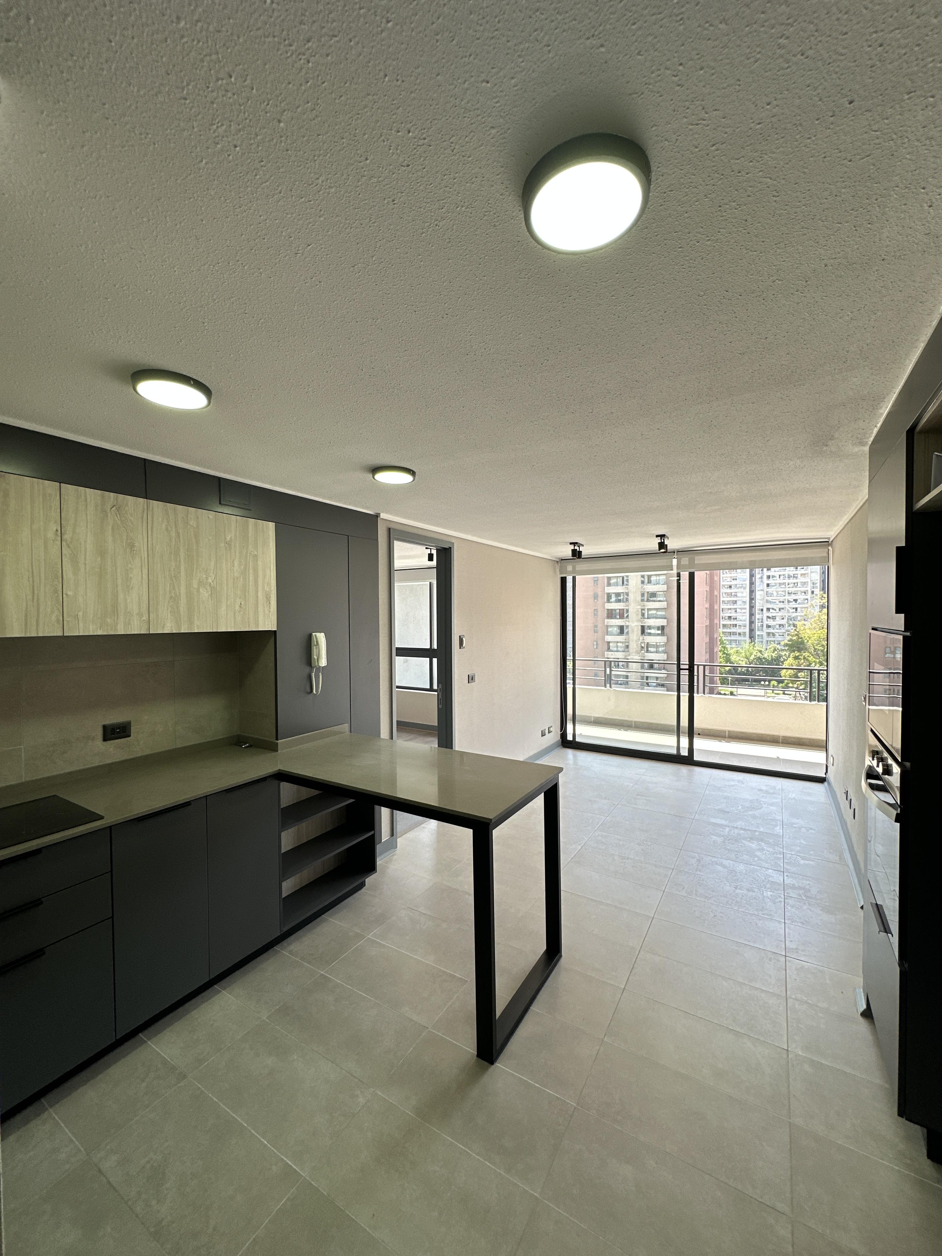 Departamento completamente nuevo, estilo mariposa, cuenta con dos dormitorios con salida a la terraza, ambos dormitorios cuentan con closet y baño completo. Living comedor con salida a una amplia terraza vista norte. Cocina concepto abierto, amoblada y equipada con horno, microondas empotrado, cocina vitrocerámica, espacio para refrigerador y conexión a lavadora. Lámparas instaladas y cortinas roller en todo el departamento. Piso 7. Orientación norte.