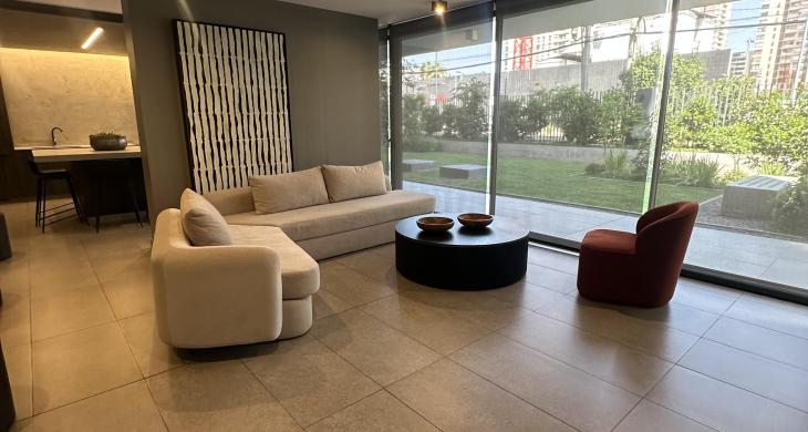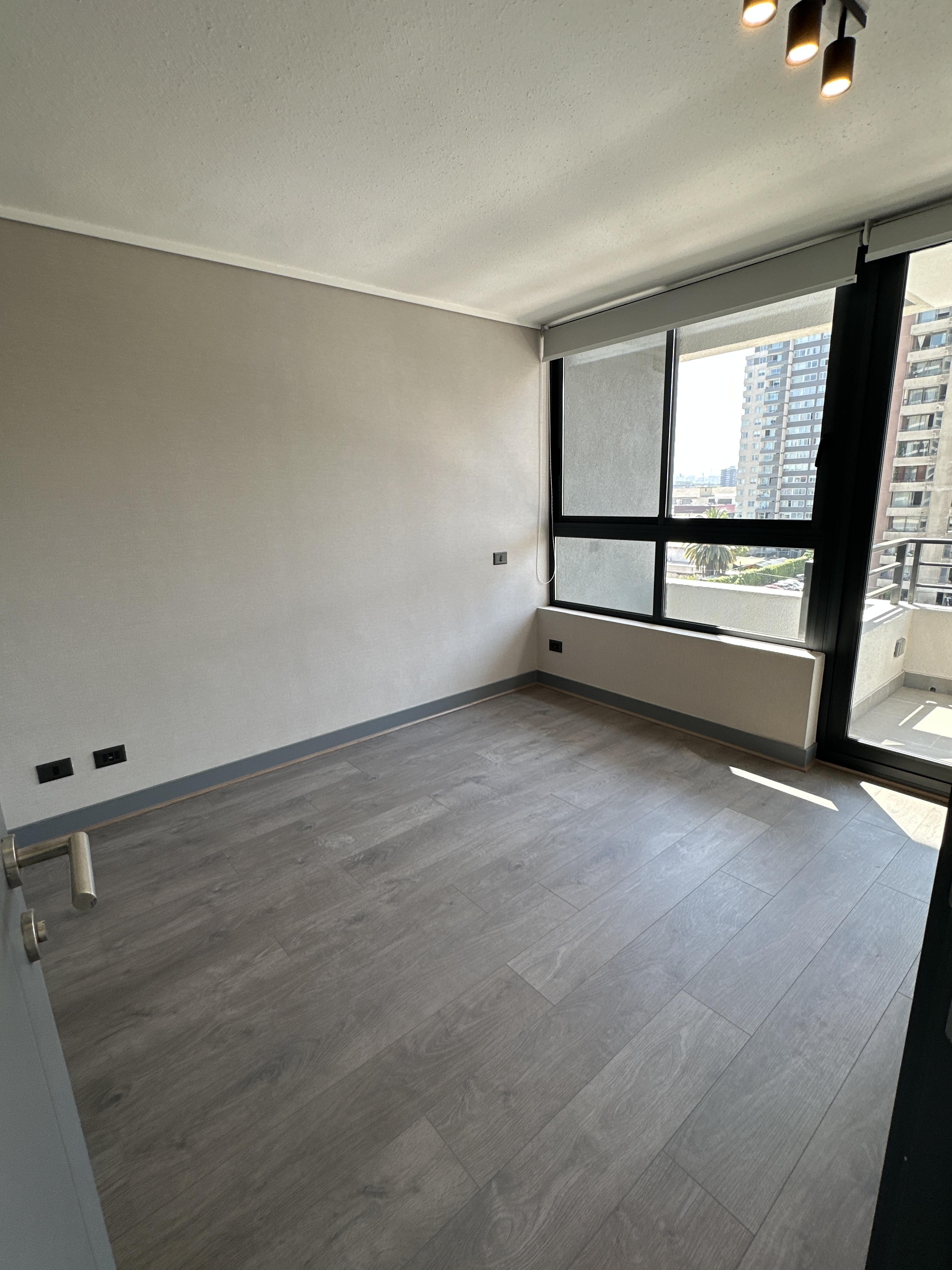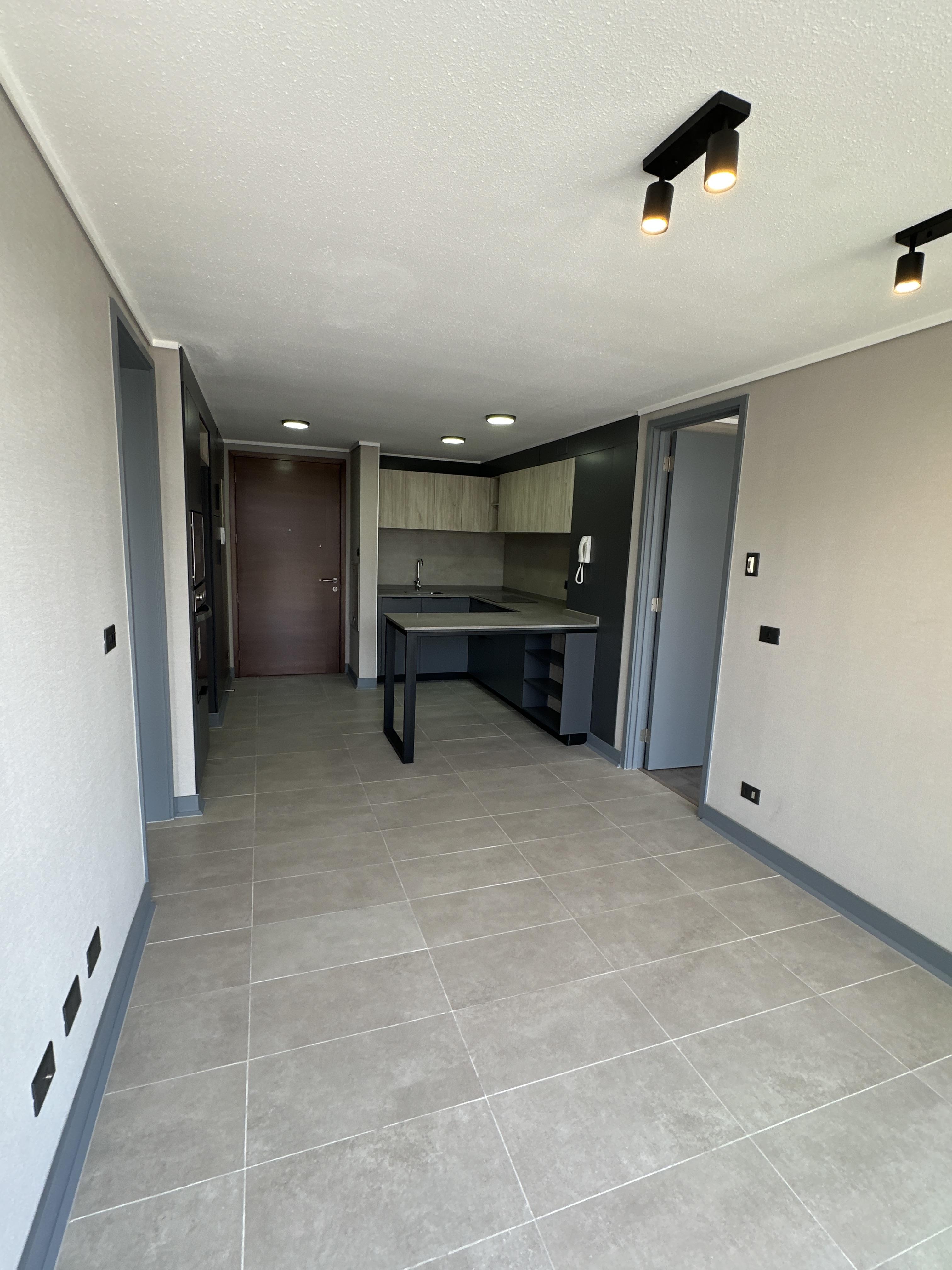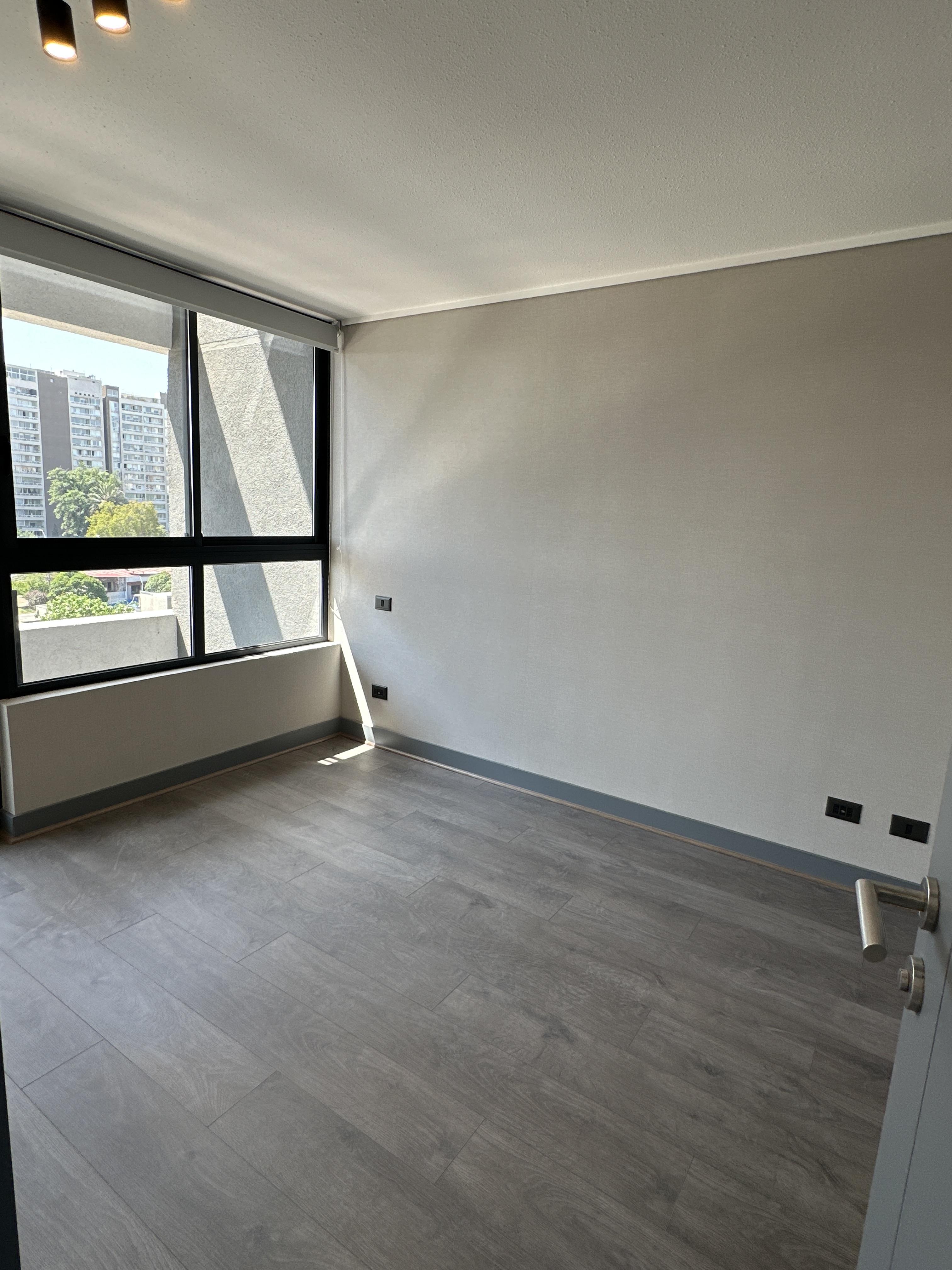 Departamento completamente nuevo, estilo mariposa, cuenta con dos dormitorios con salida a la terraza, ambos dormitorios cuentan con closet y baño completo. Living comedor con salida a una amplia terraza vista norte. Cocina concepto abierto, amoblada y equipada con horno, microondas empotrado, cocina vitrocerámica, espacio para refrigerador y conexión a lavadora. Lámparas instaladas y cortinas roller en todo el departamento. Piso 7. Orientación norte.