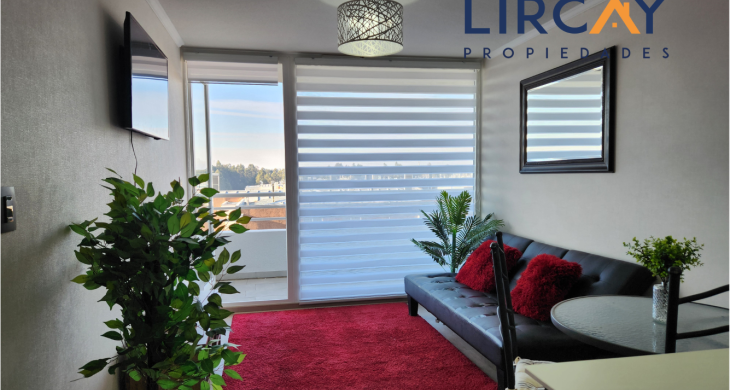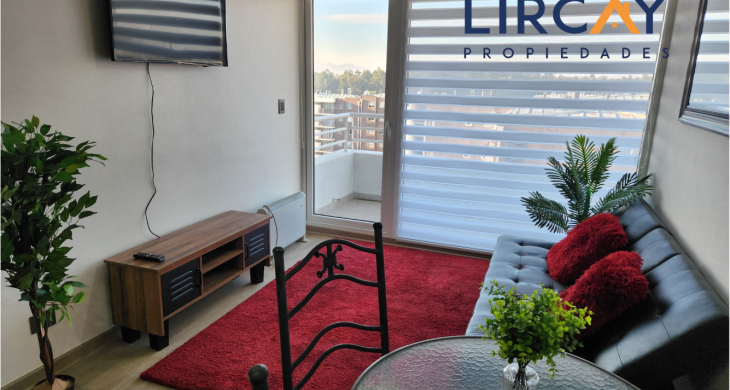Lircay Propiedades te presenta para Arriendo este hermoso departamento totalmente amoblado, perteneciente al exclusivo edificio y condominio Altos de Lircay, ubicado inmediatamente frente a la Universidad de Talca.