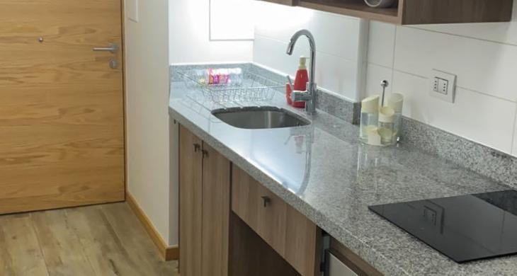 Departamento Estudio amoblado a pasos de la Universidad Austral en Isla Teja. Consta de cocina totalmente equipada y zona de dormitorio con un baño completo.