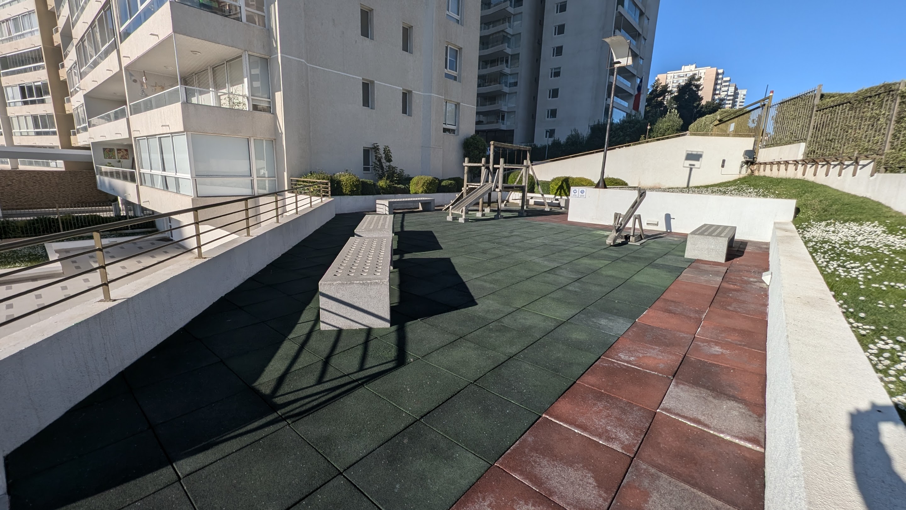 El Edificio cuenta con Conserjeria, Salón de Reuniones, Lavandería, Gimnasio, Quinchos, Salón de Eventos, Piscina Exterior, Jardín exterior con juegos de niños, Piscina temperada, Jacuzzi, Sauna, Camarines, Terraza mirador (Piso 27), 3 Asensores.