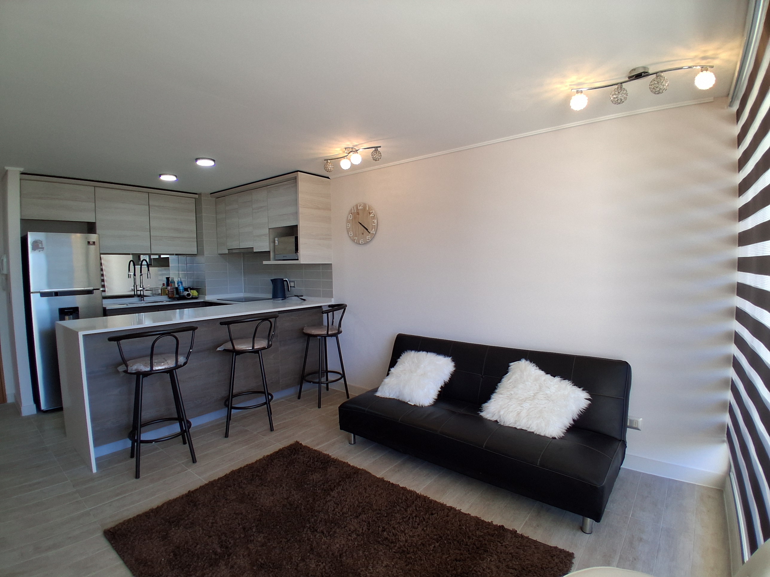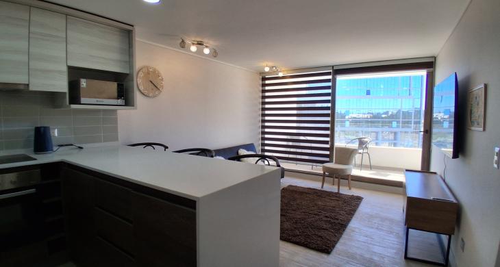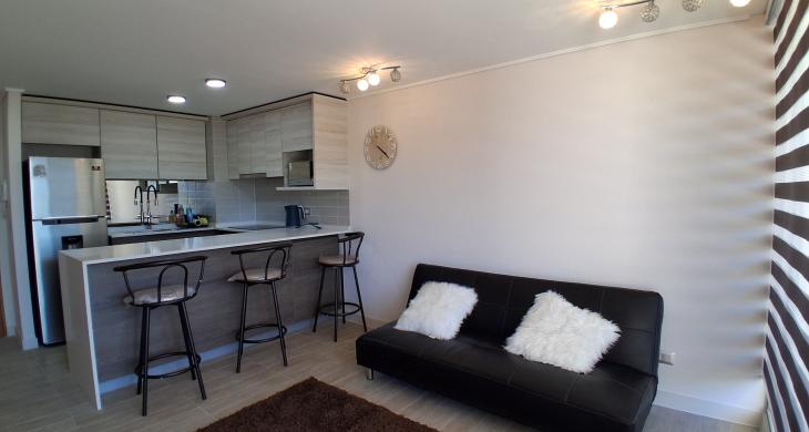 2 Dormitorios y 1 Baños: Equipamiento full de alta calidad. Camas, living-comedor y cocina 100% equipada (encimera, horno, campana).