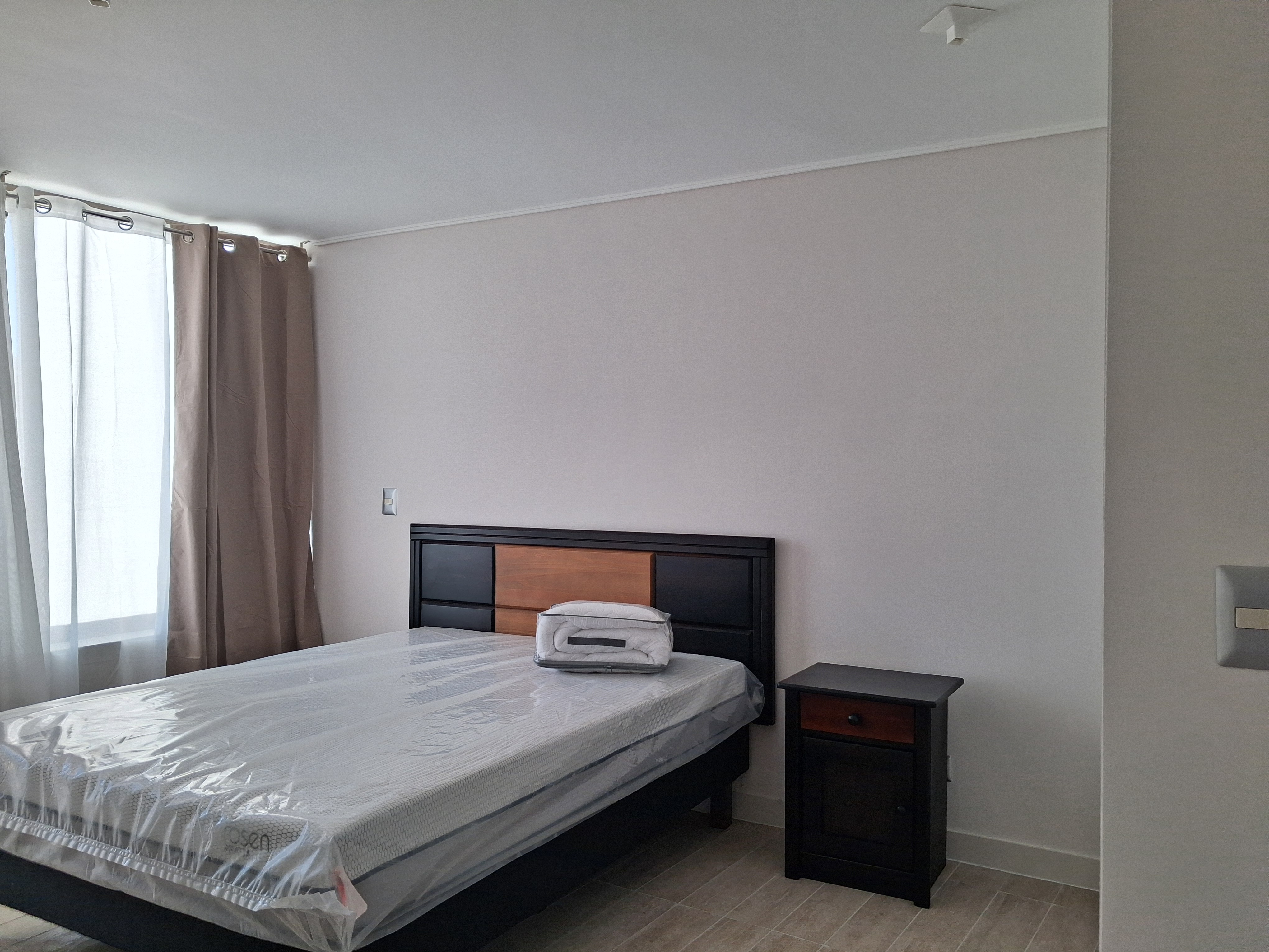 Se arrienda departamento totalmente nuevo y amoblado, en el prestigioso edificio Plaza Los Pinos. Ubicado en el piso 8, esta unidad destaca por su vista panorámica despejada y una distribución que privilegia la amplitud y la luz natural.