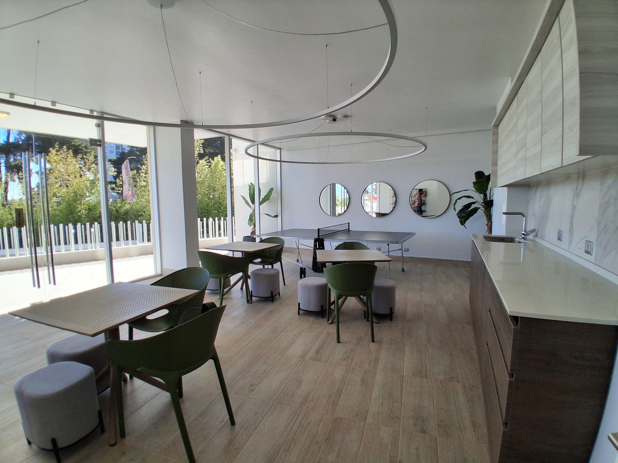 Ascensores Panorámicos: Vive una experiencia única desde tu llegada; el edificio cuenta con modernos ascensores de cristal que ofrecen una vista espectacular al bosque y la ciudad.