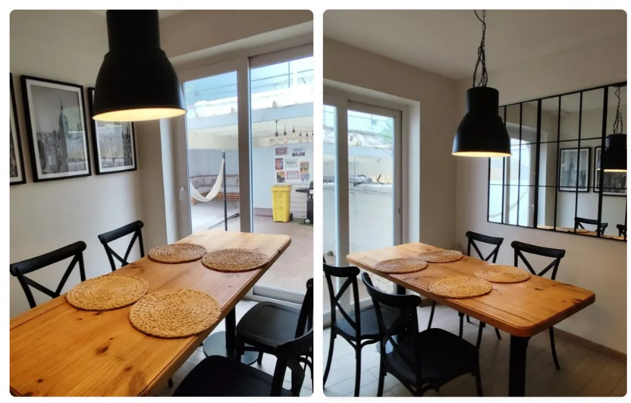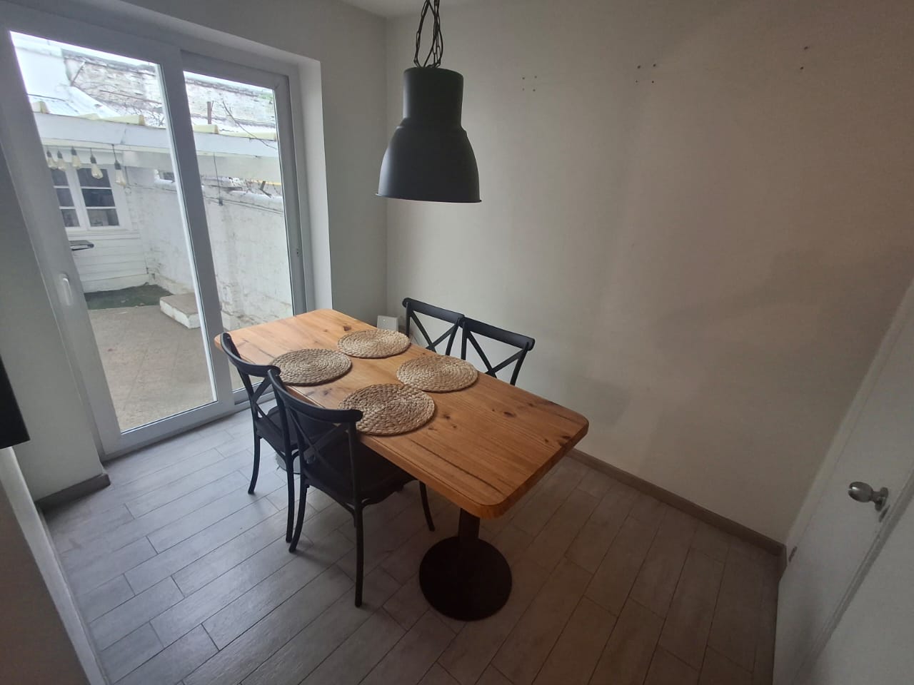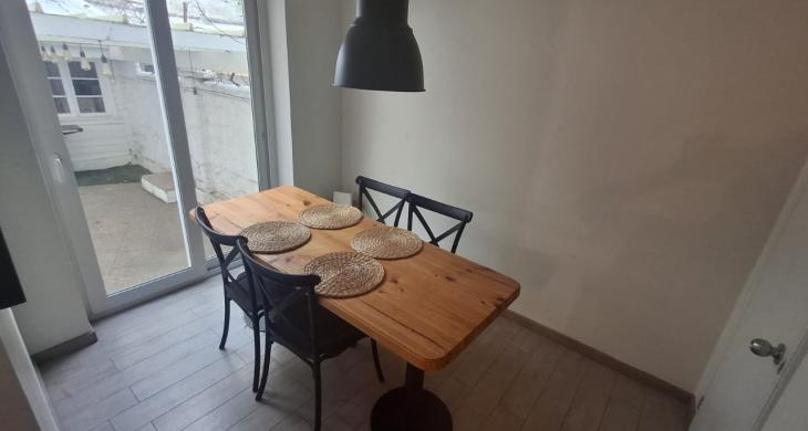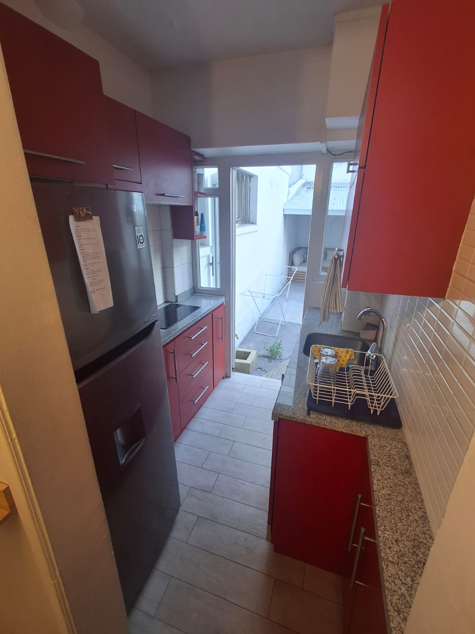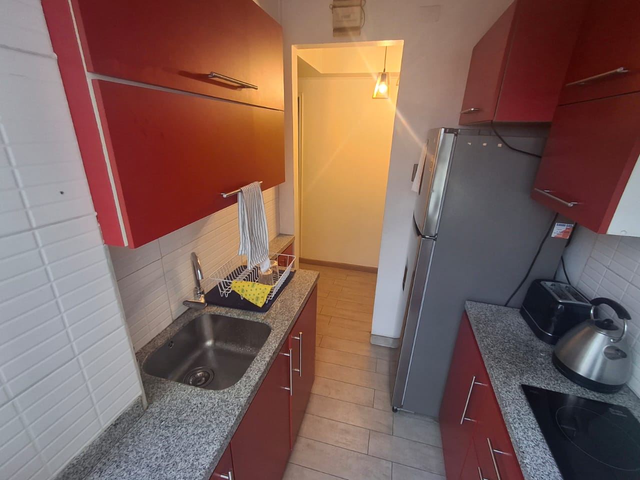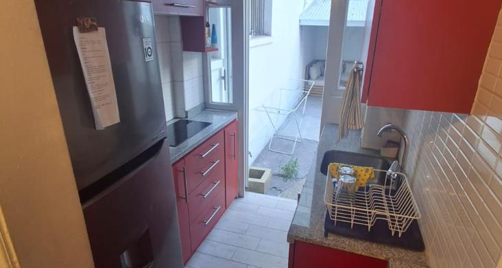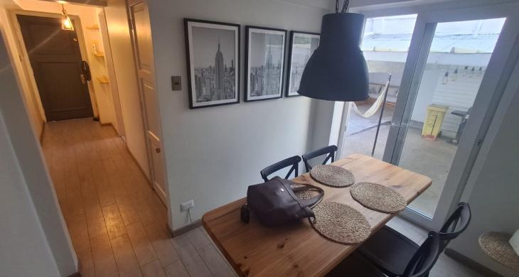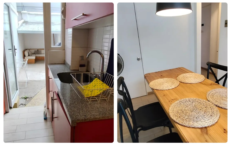 Cocina y un luminoso living-comedor.