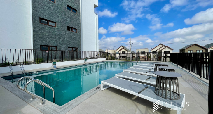 Ubicado en el primer piso de un moderno edificio de 4 pisos (Torre 4), este departamento se destaca por su distribución inteligente y sus finas terminaciones. La propiedad, construida en 2025, garantiza un estándar de calidad superior. El condominio ofrece seguridad las 24 horas, brindándole tranquilidad y protección para usted y su familia.