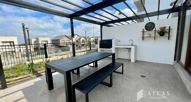 Este espectacular departamento en arriendo ofrece una superficie construida de 80 m² y una terraza de 10 m², ideal para disfrutar del aire libre y las vistas panorámicas. Cuenta con 3 amplios dormitorios, incluyendo un dormitorio en suite, y 2 baños completos. Dispone además de 1 estacionamiento exclusivo para su comodidad.