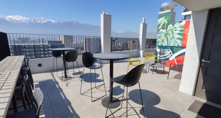 Edificio cuenta con áreas comunes como seguridad 24/7, Quinchos, Salones Comunes, Piscina, Co-Work, GyM, Lavandería, Estacionamiento de visitas, cercano a comercios, clínicas, locomoción colectiva entre otras