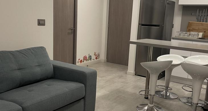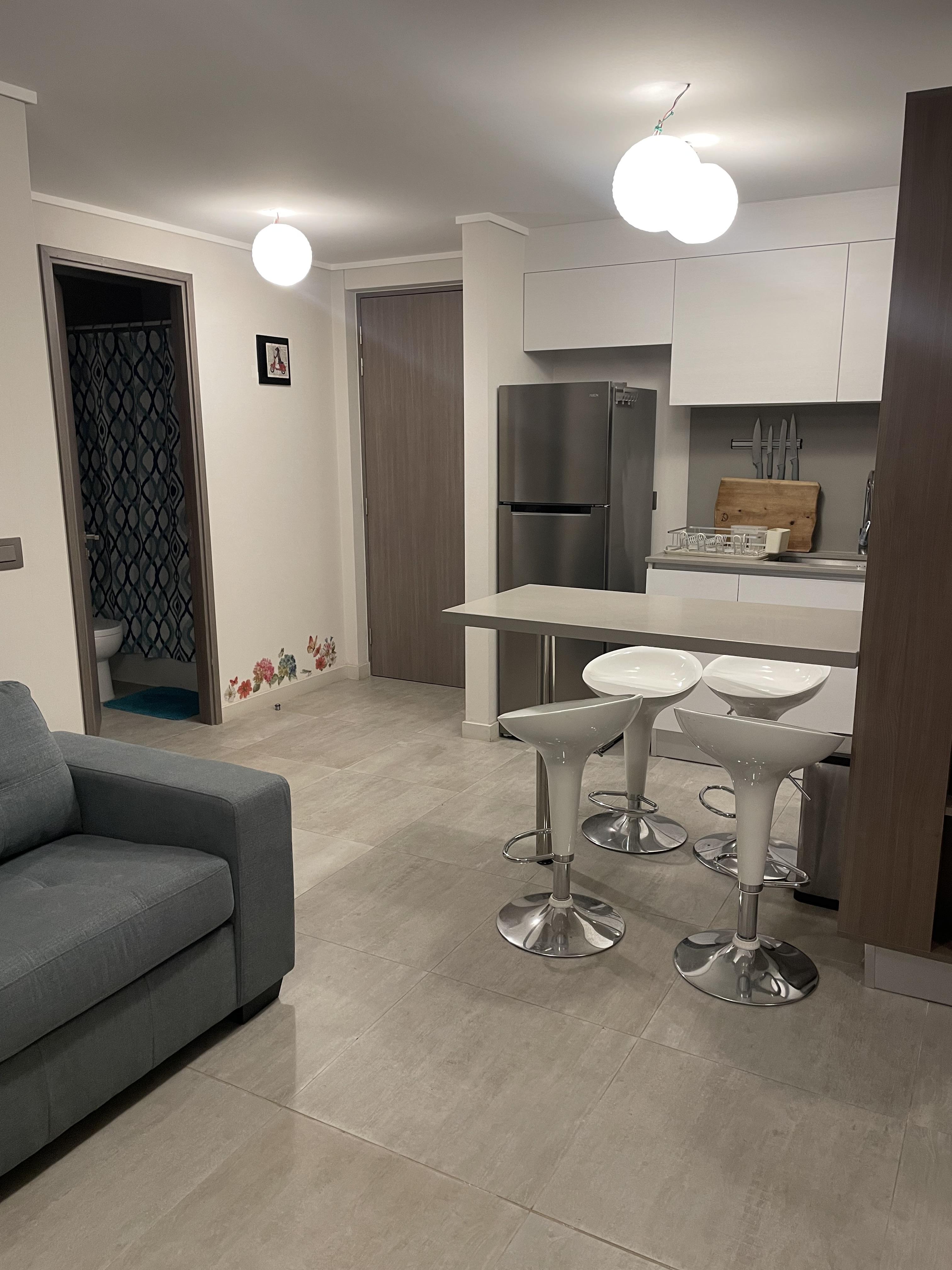 El inmueble se entrega completamente amoblado y equipado, permitiendo una disponibilidad inmediata para sus nuevos arrendatarios. Entre sus características diferenciadoras se encuentra su ubicación en un piso elevado, lo que asegura una luminosidad natural óptima durante gran parte del día y una perspectiva despejada del entorno. La seguridad es un pilar fundamental en este complejo residencial, contando con sistemas de vigilancia y personal de conserjería las 24 horas del día, lo que brinda total tranquilidad a sus habitantes. La amplia terraza se convierte en el espacio ideal para el descanso, integrándose armoniosamente con el área social del departamento.