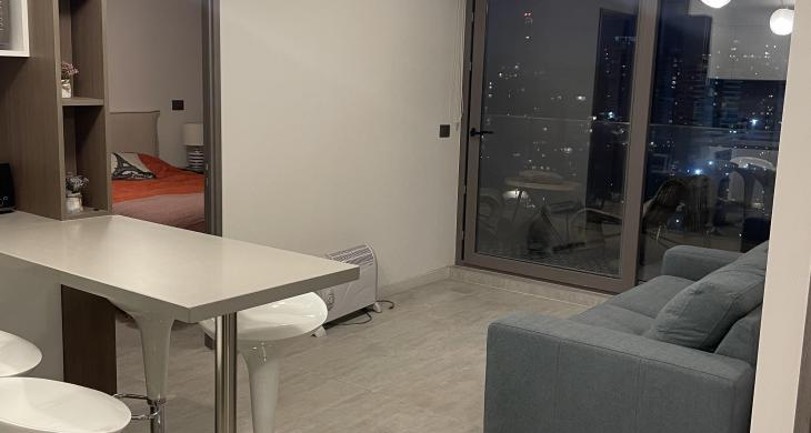 Con una superficie total de 61 metros cuadrados, de los cuales 48 metros cuadrados corresponden a su área interior y una generosa terraza de 12 metros cuadrados, este departamento del año 2022 destaca por su excelente estado de conservación y acabados contemporáneos. La distribución interna contempla dos amplios dormitorios, incluyendo una habitación principal en suite, y dos baños completos con terminaciones de alta calidad. La unidad incluye un estacionamiento privado, asegurando comodidad y accesibilidad en todo momento dentro de un edificio de 25 niveles con estándares constructivos de vanguardia y solo ocho departamentos por piso para garantizar mayor privacidad.