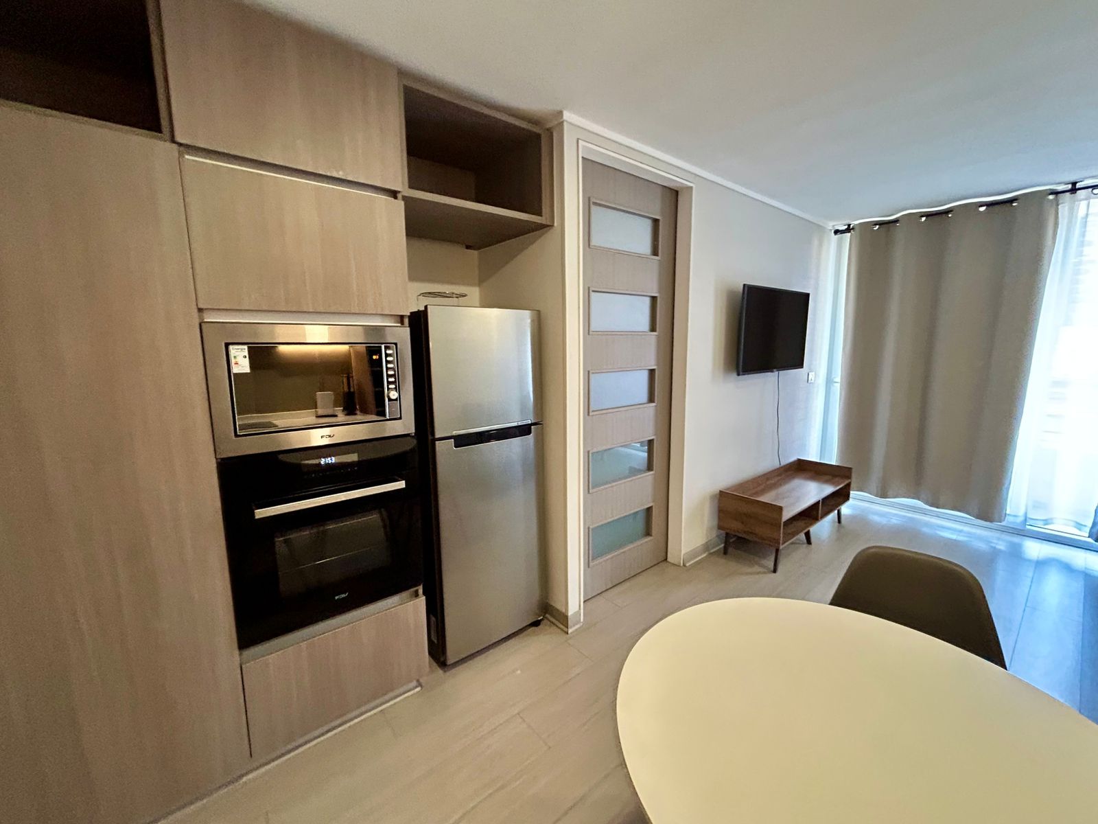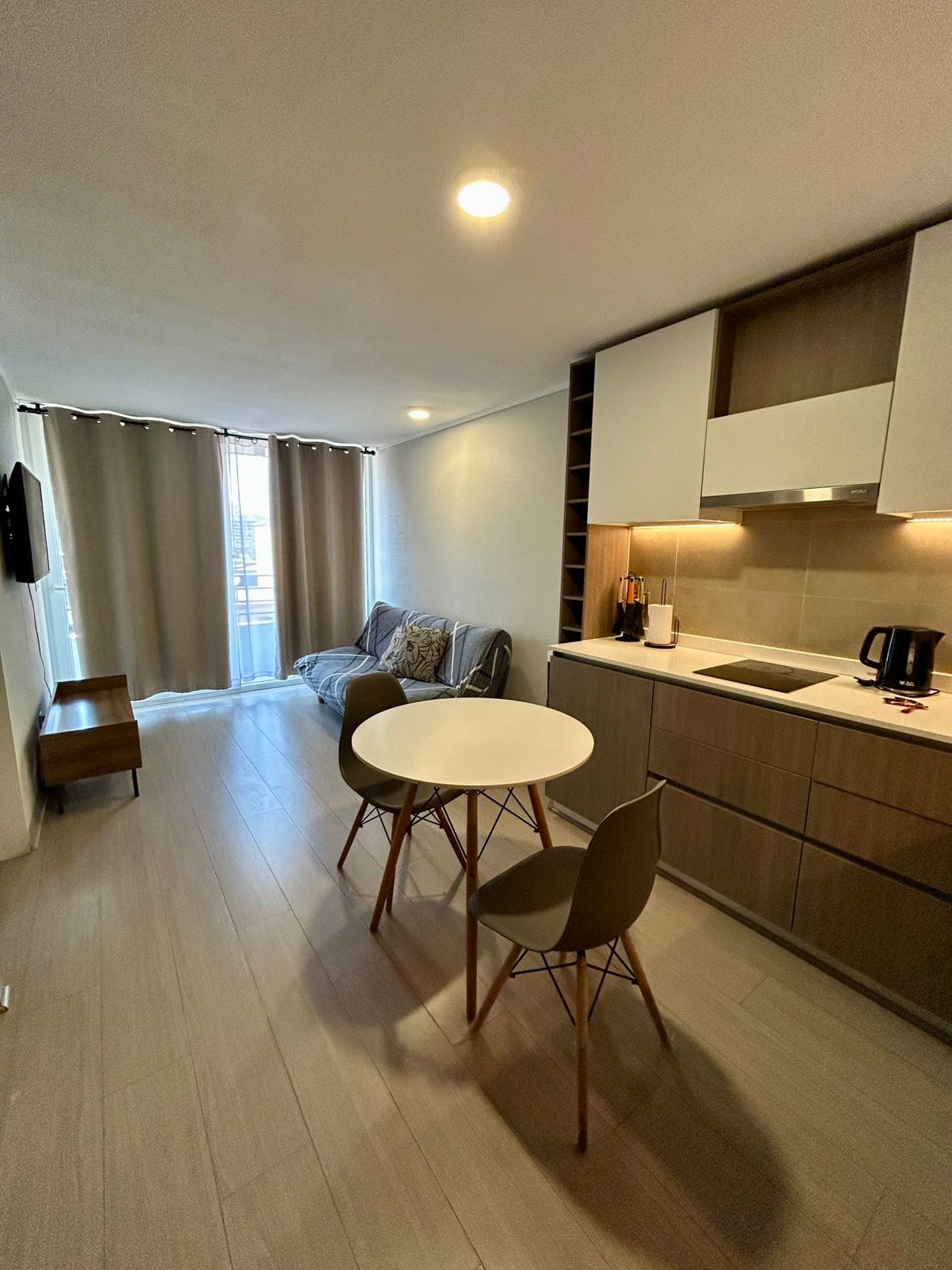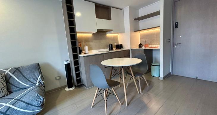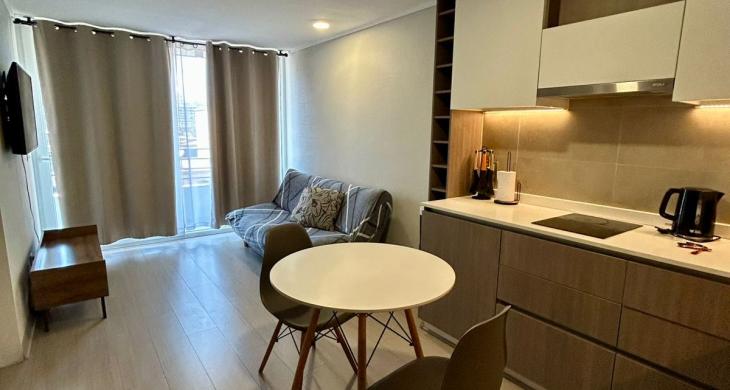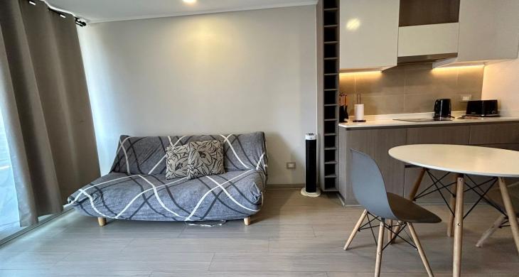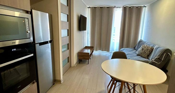 Se Arrienda Depto. nuevo de 1D1B más estacionamiento, ubicado en 4to.. Piso, con balcón vista despejada. Orientación Norte. Depto. Completamente amoblado.
