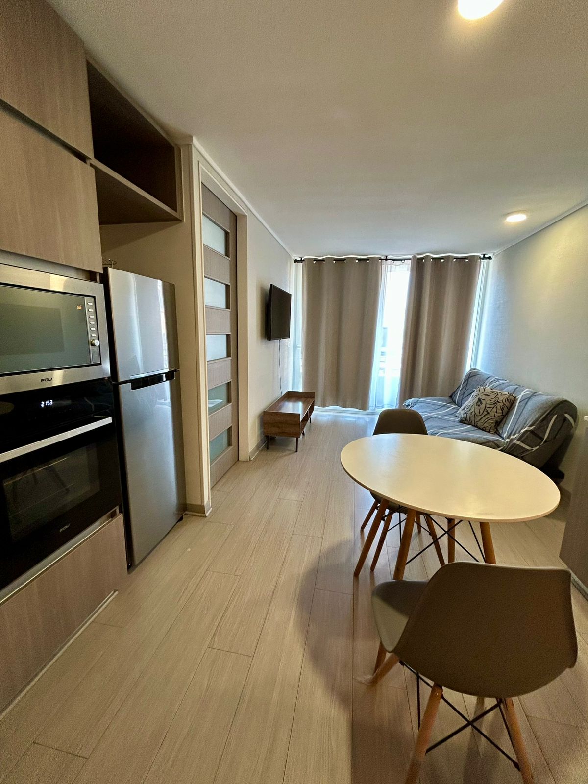 Se Arrienda Depto. nuevo de 1D1B más estacionamiento, ubicado en 4to.. Piso, con balcón vista despejada. Orientación Norte. Depto. Completamente amoblado.