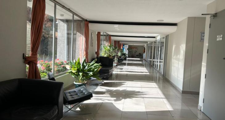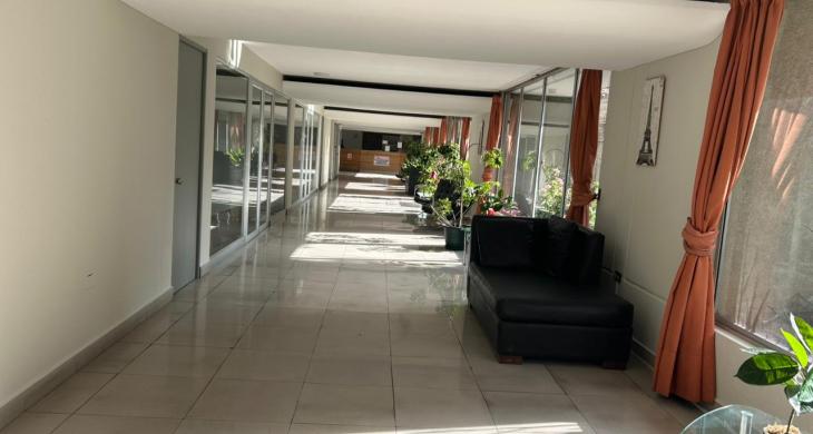 Edificio cuenta con áreas comunes como seguridad 24/7, Salón Común, Lavandería, estacionamiento de visitas, cercano a comercios, clínicas, locomoción colectiva entre otras