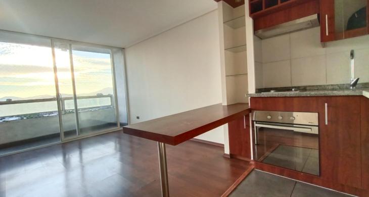 Se Arrienda Depto. de 1D1B, ubicado en Piso 21, con vista despejada y malla de seguridad. Orientación Poniente.