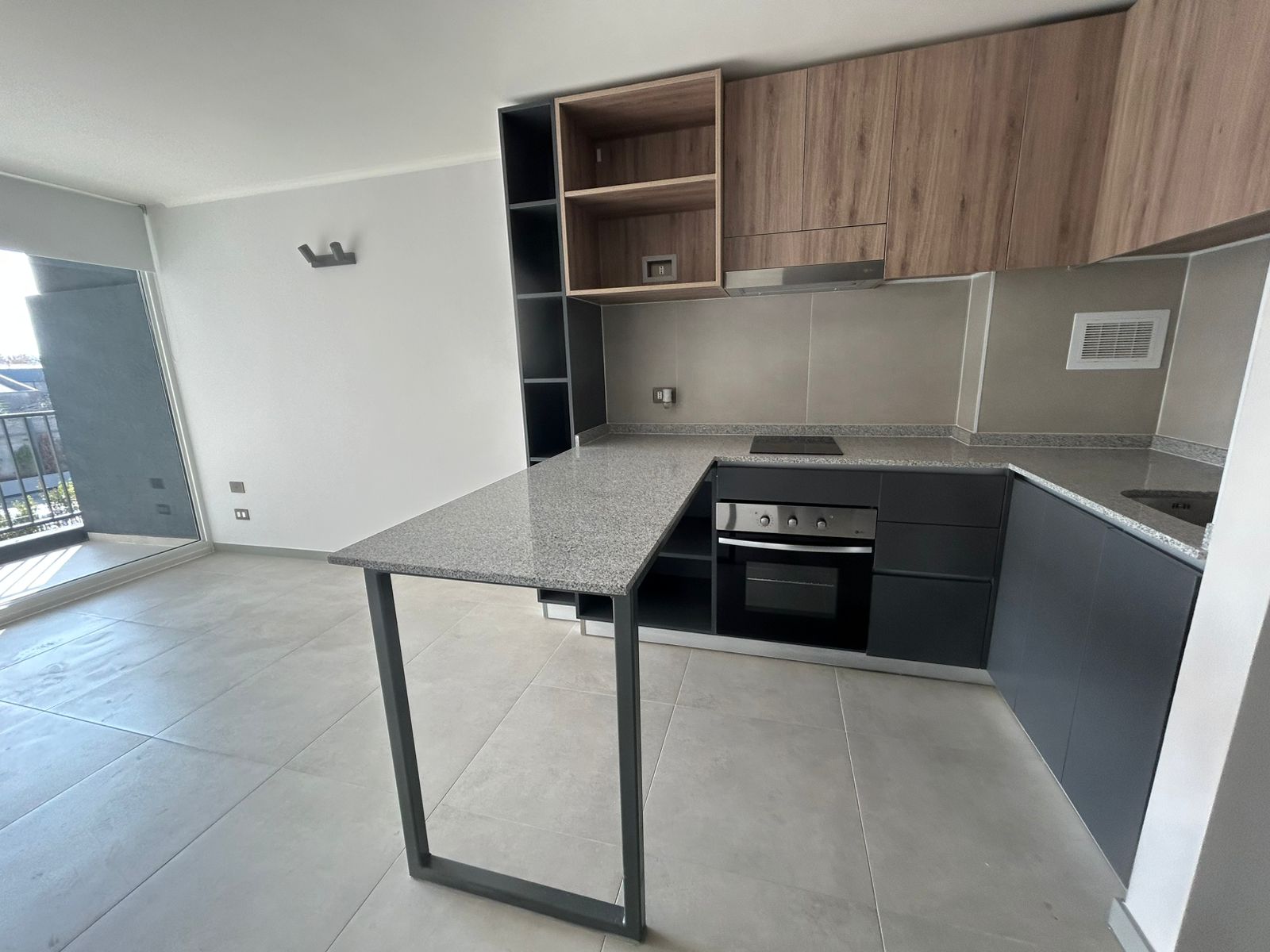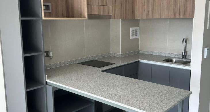 Depto. cuenta con cocina encimera, horno y campana, balcón con vista despejada y conexión a lavadora.