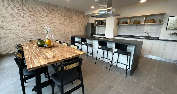 Edificio cuenta con áreas comunes como seguridad 24/7, Quinchos, Salones, Juegos para niños, Estacionamiento de visitas, cercano a comercios, Autopista Central, Colegios, Locomoción colectiva entre otras