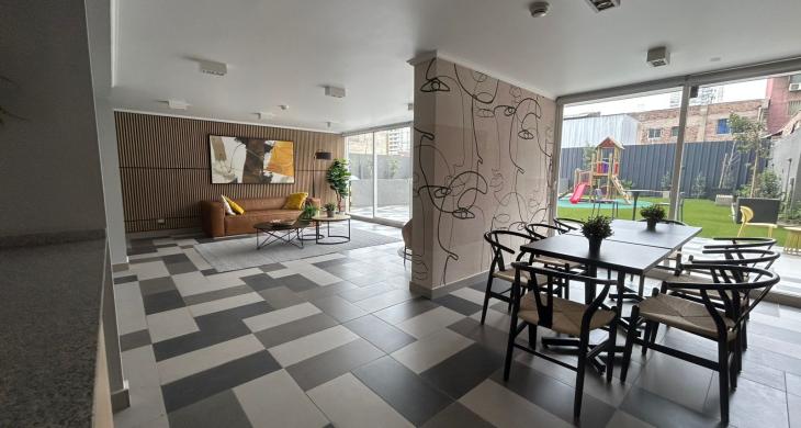 Edificio cuenta con áreas comunes como seguridad 24/7, quinchos, salones, Cowork, GyM, lavandería, juegos para niños, áreas verdes, estacionamiento de visitas, cercano a comercios, clínicas, locomoción colectiva entre otras