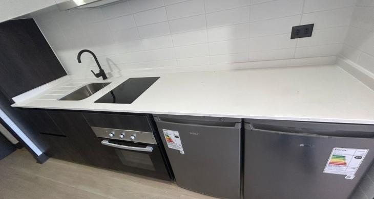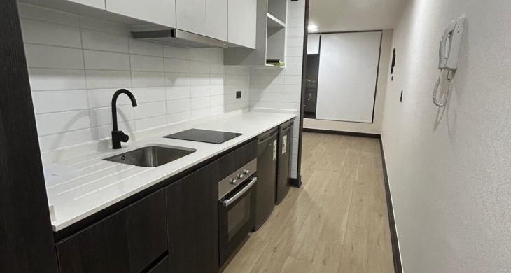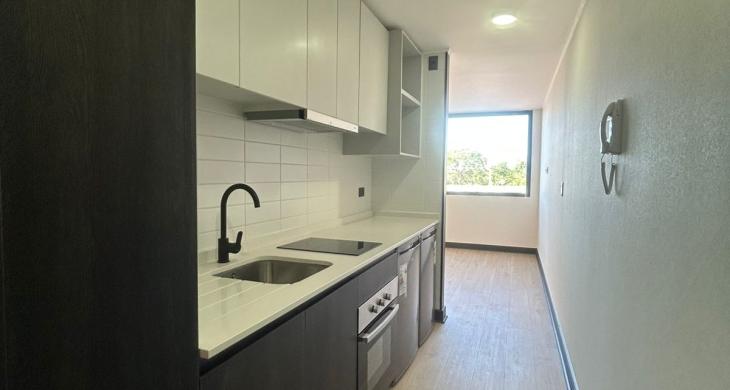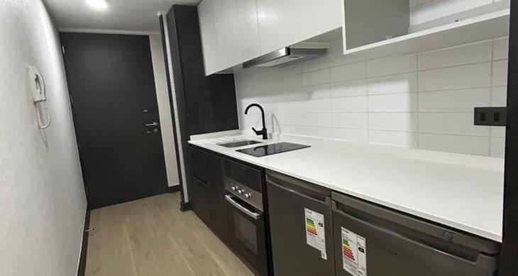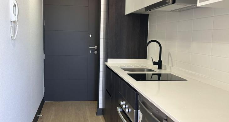 Se arrienda Depto. tipo Studio en Piso 21. Depto. cuenta con cocina encimera, horno, campana y refrigerador, vista despejada.