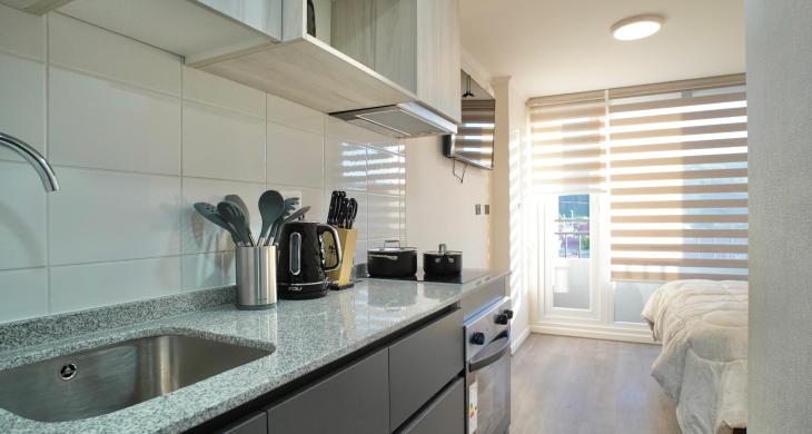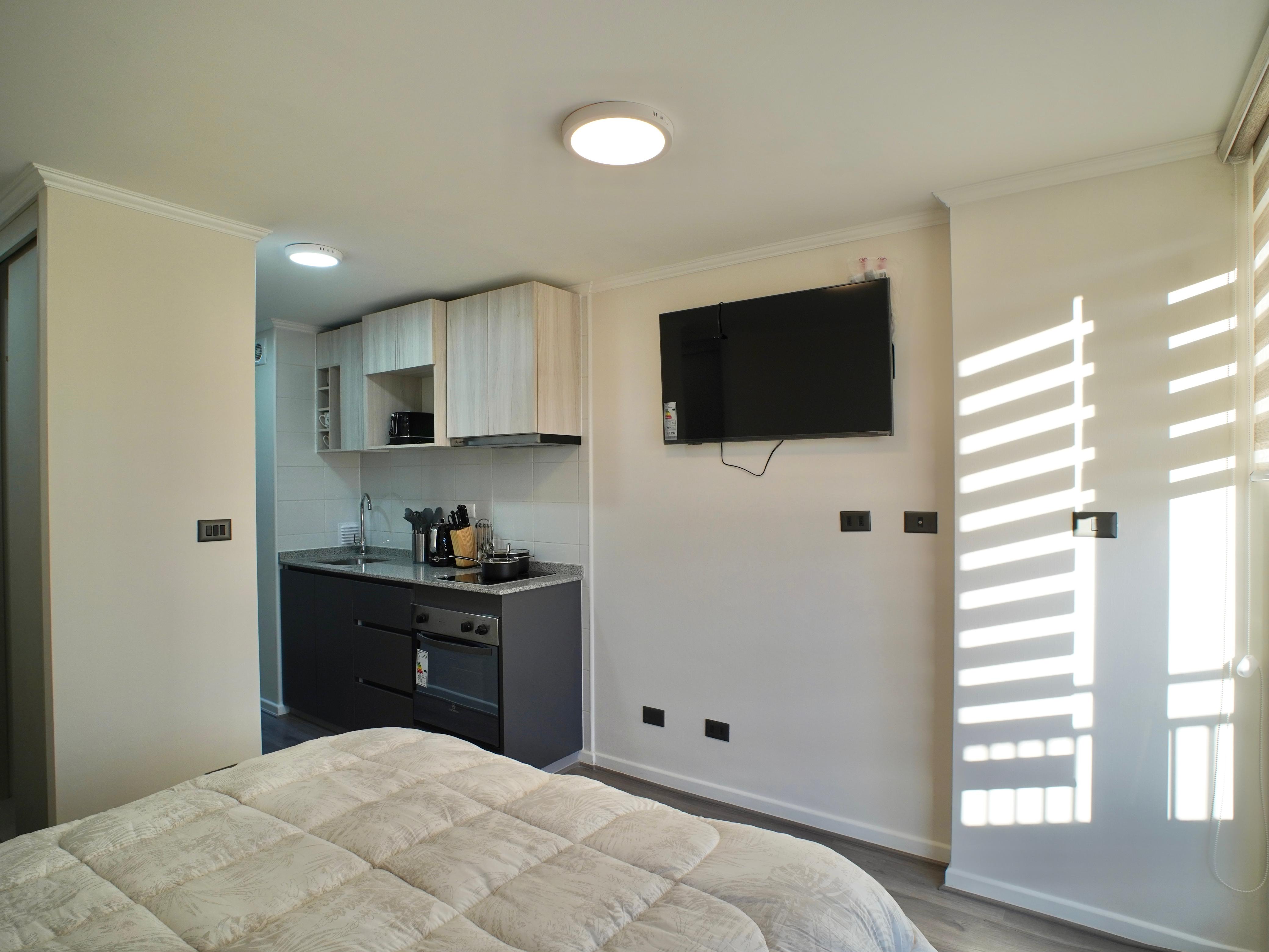 Departamento nuevo, delicadamente amoblado, queda también con cortinas roller y lámparas.