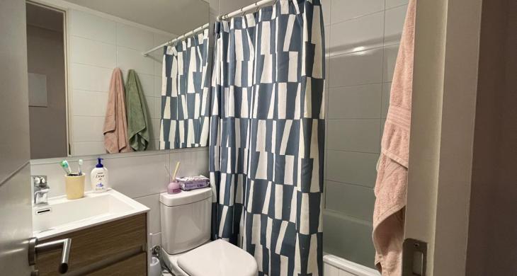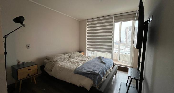 El departamento cuenta con una distribución inteligente y moderna, disponiendo de dos dormitorios uno más pequeño, con una excelente organización del mobiliario, y un baño completo con terminaciones contemporáneas. El estado de conservación de la propiedad es impecable, presentándose como una unidad usada en excelentes condiciones, lista para ser habitada o destinada al mercado de arriendos (actualmente arrendada ). Los espacios internos han sido pensados para maximizar la sensación de amplitud, logrando un equilibrio perfecto entre las áreas privadas y el sector social.