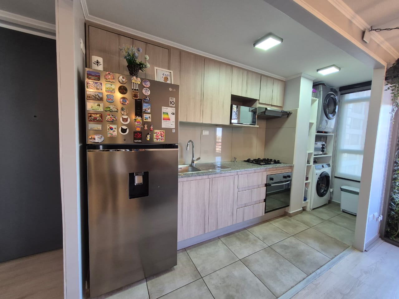 El condominio ofrece seguridad 24 horas, brindando tranquilidad y protección a sus residentes. Si bien no cuenta con características específicas como quincho o piscina privada dentro del departamento, la seguridad del condominio es un valor agregado significativo. Los gastos comunes ascienden a $60.000.