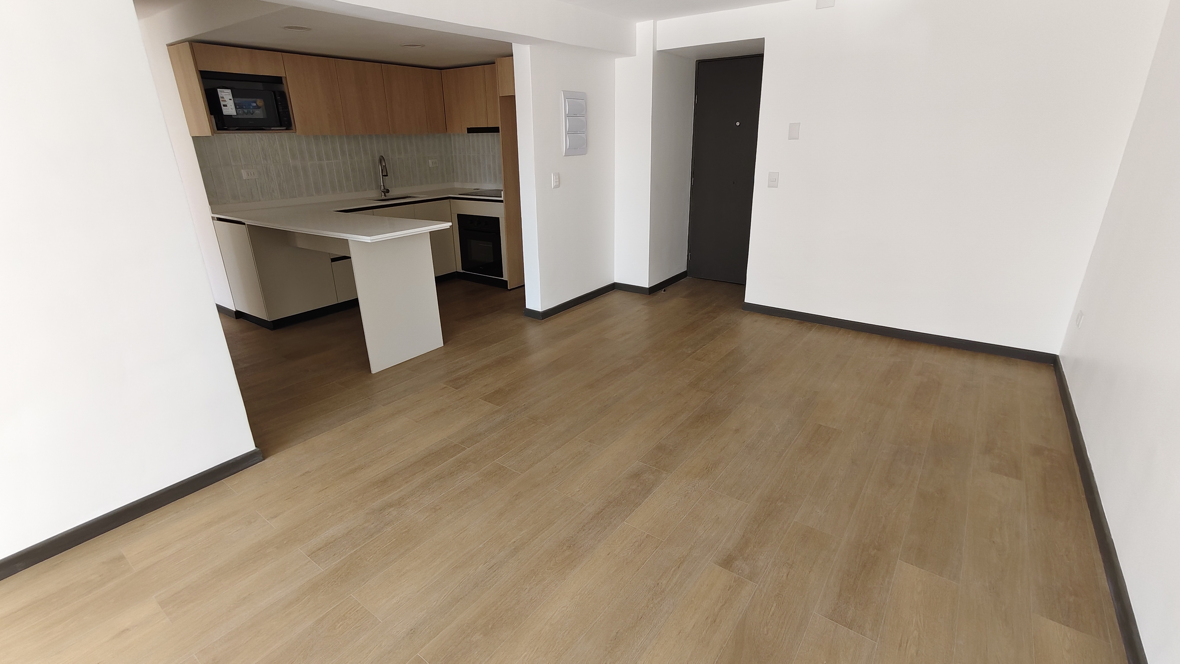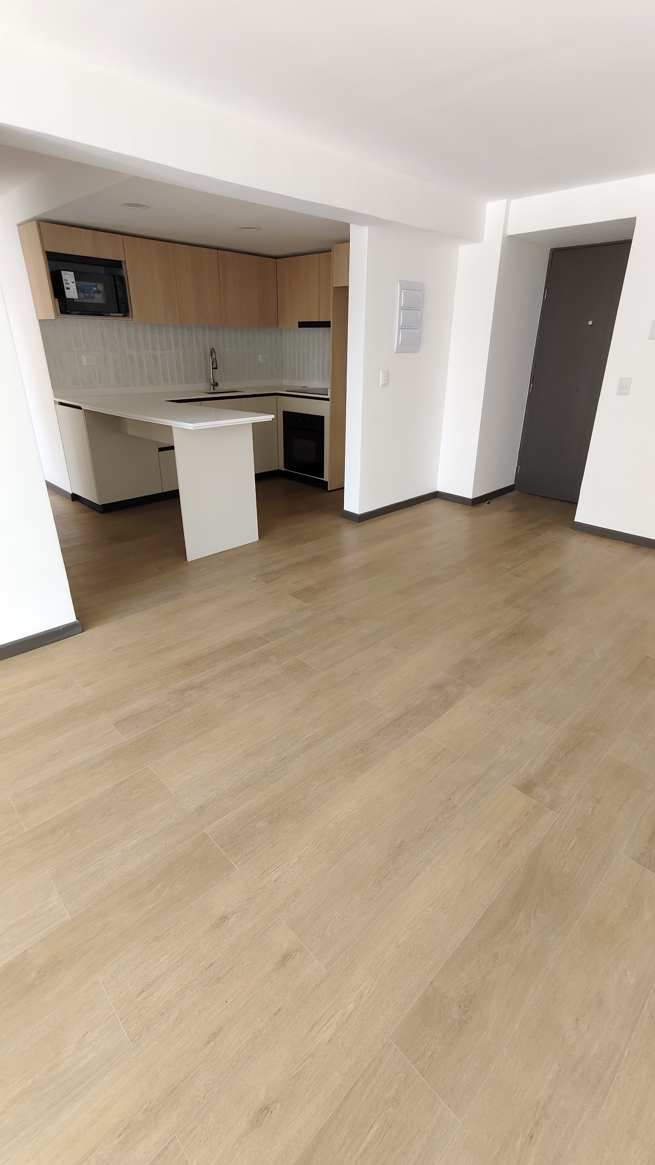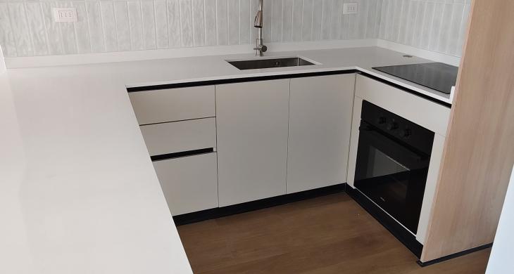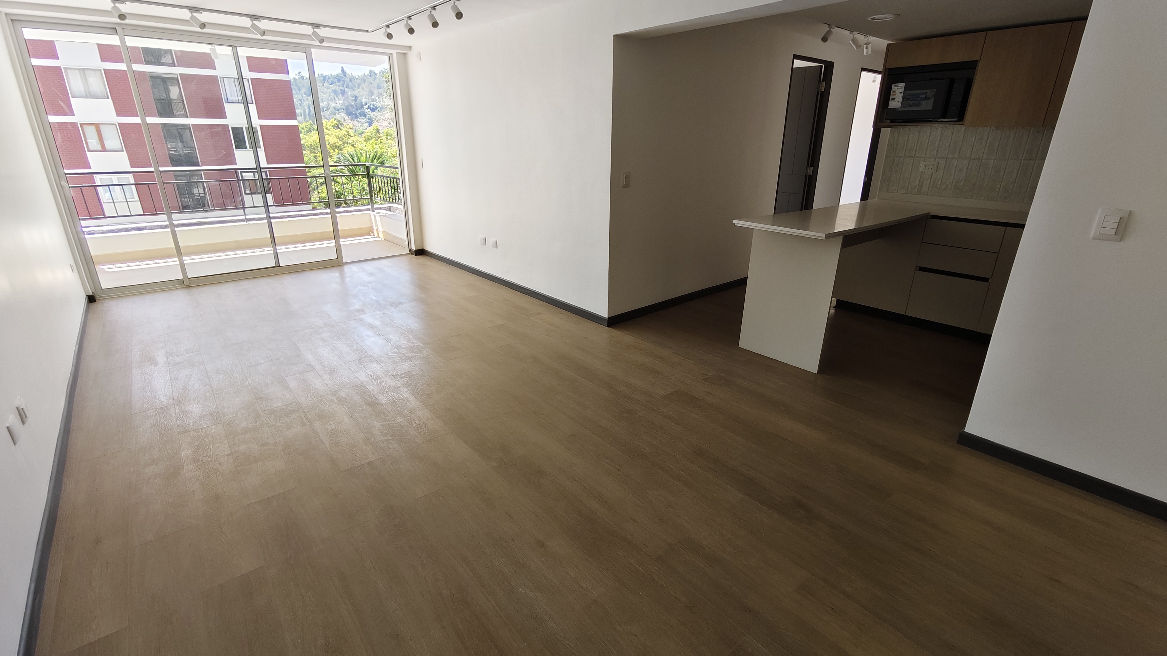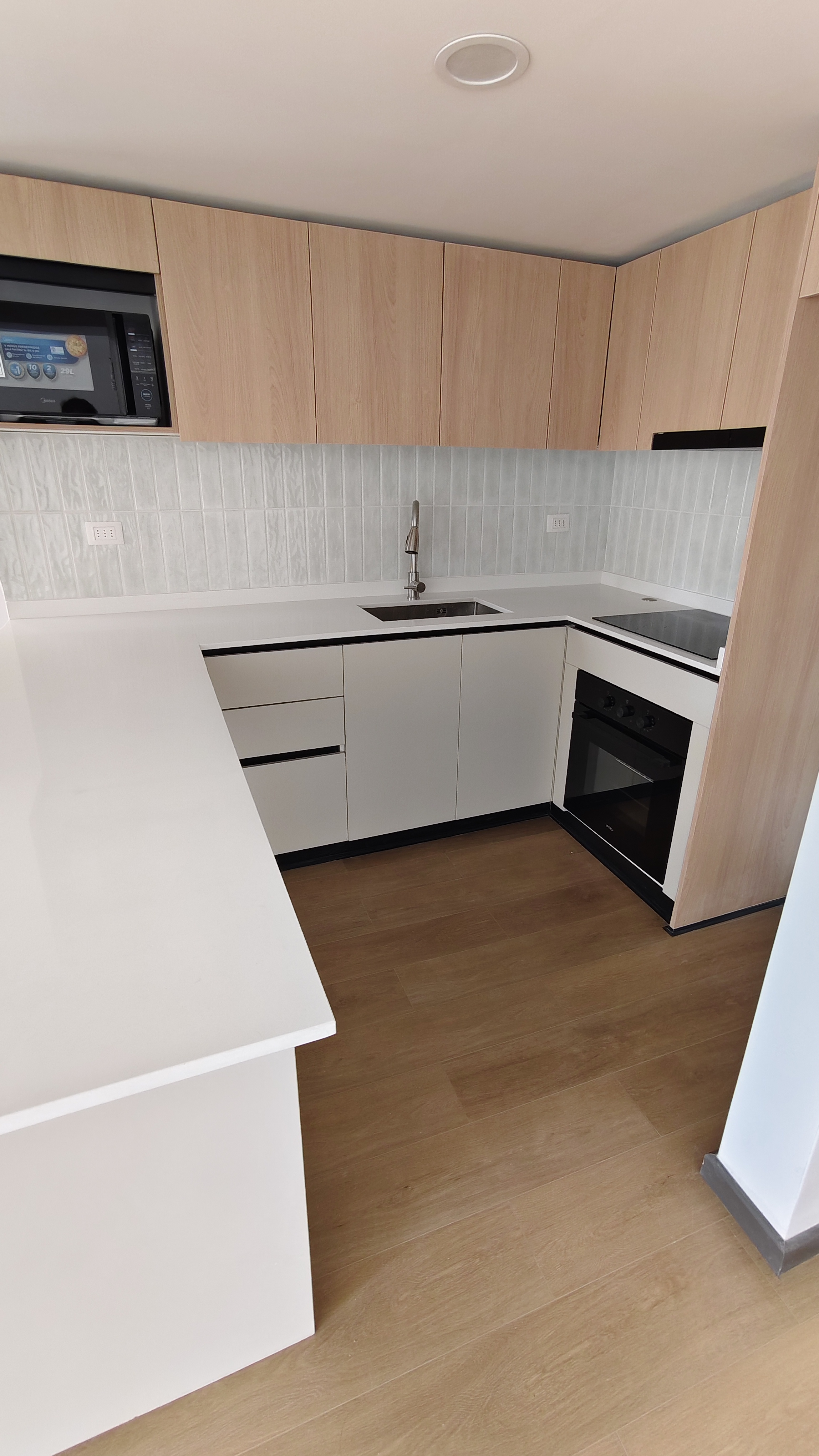 Ventanas termopanel en el living comedor, cocina completamente equipada con encimera vitrocerámica, horno eléctrico y microondas. Tiene conexión a lavadora, incluye termotanque para el agua caliente.
