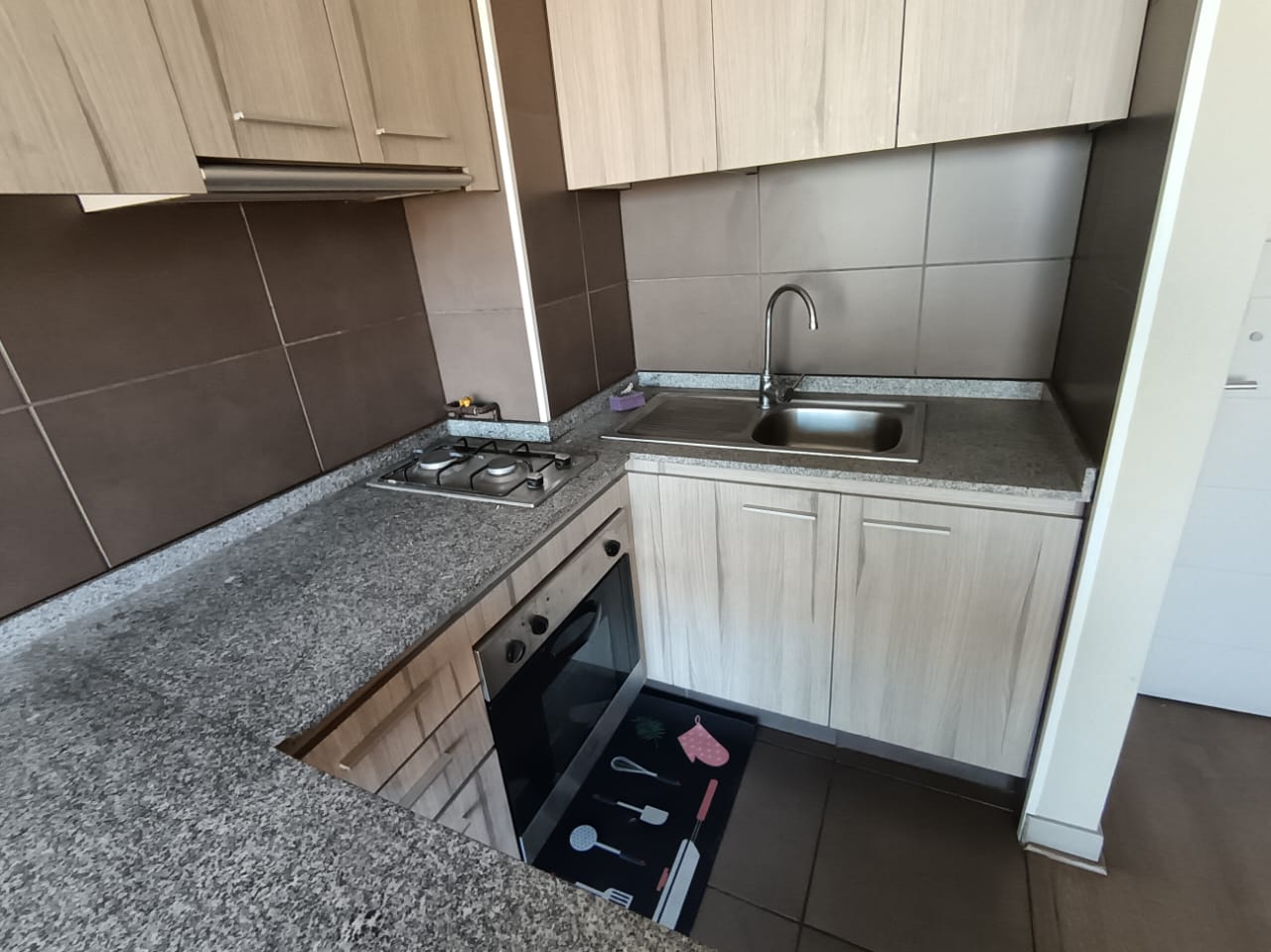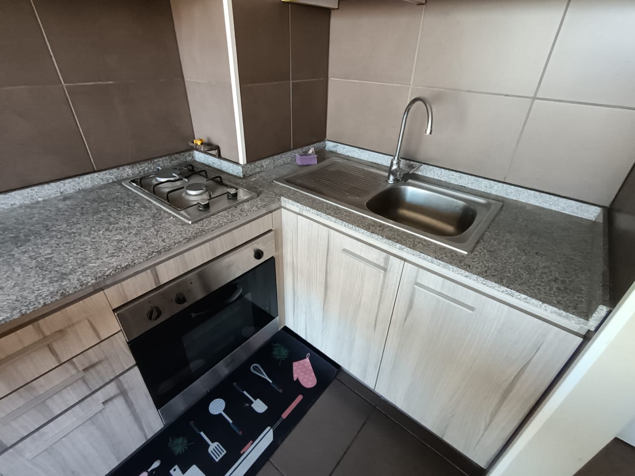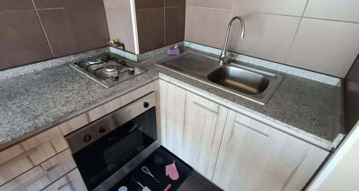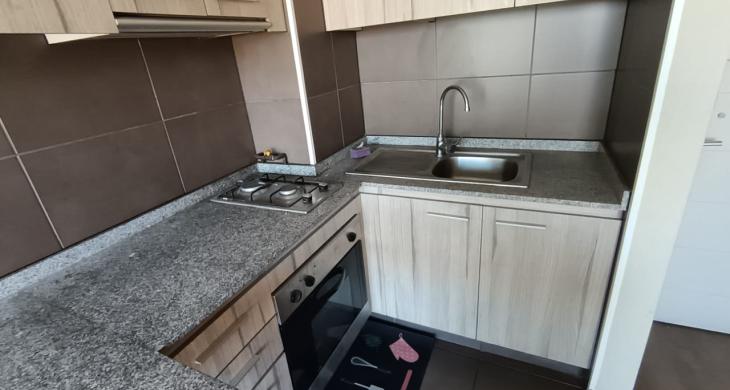 • Cocina americana amoblada con encimera de 2 platos y horno