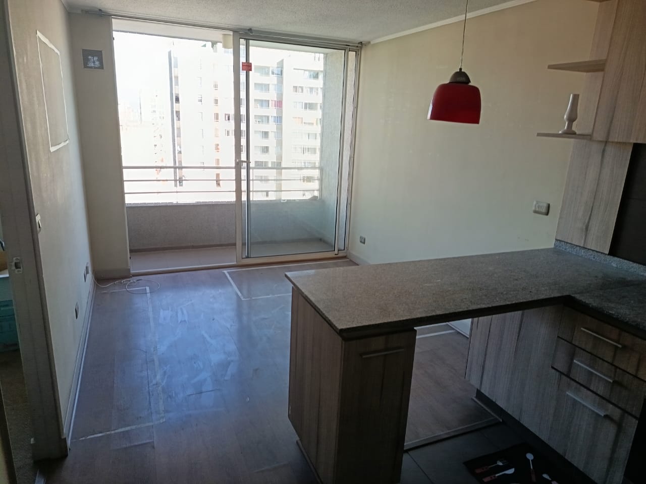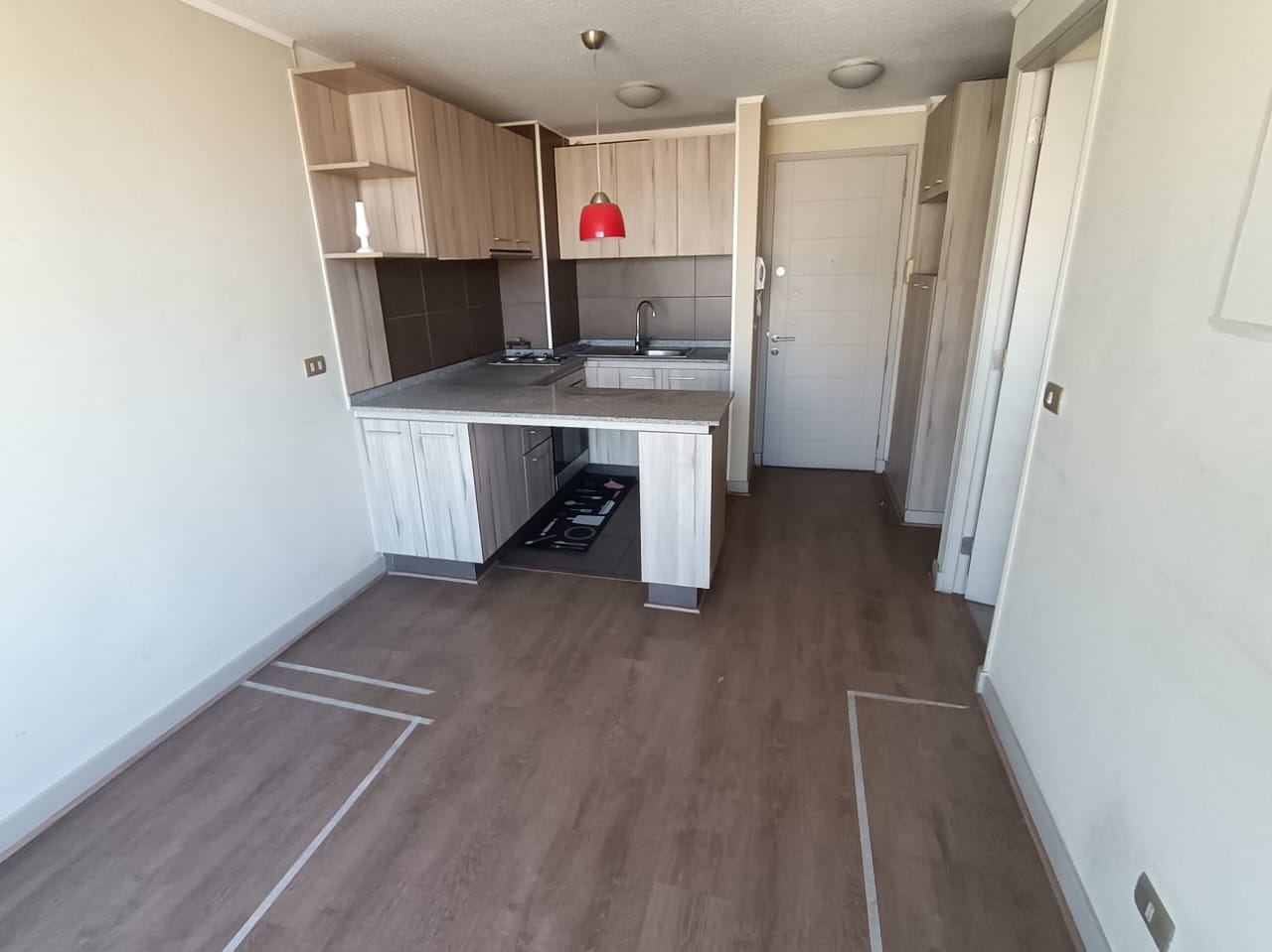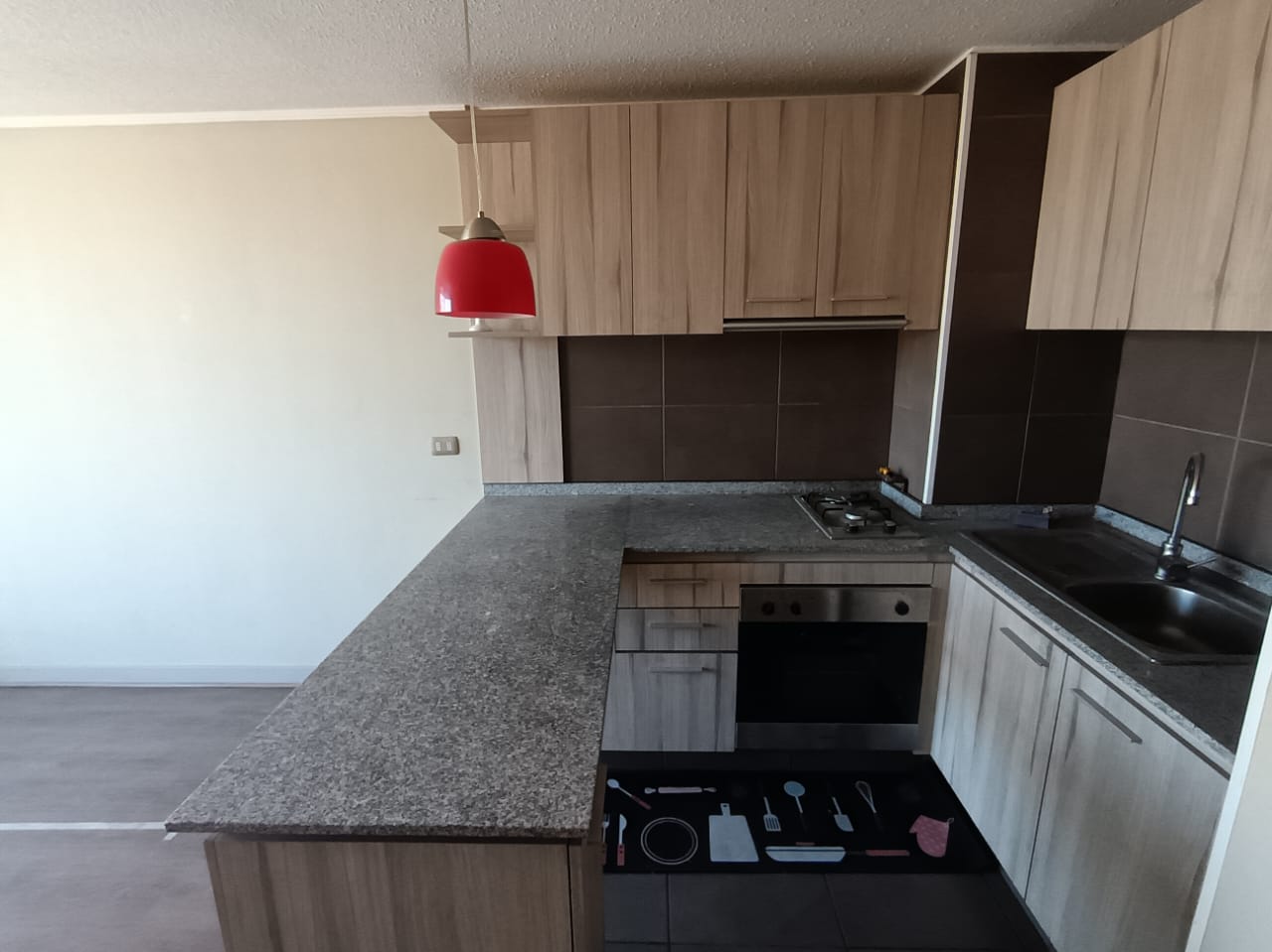 • Cocina americana amoblada con encimera de 2 platos y horno