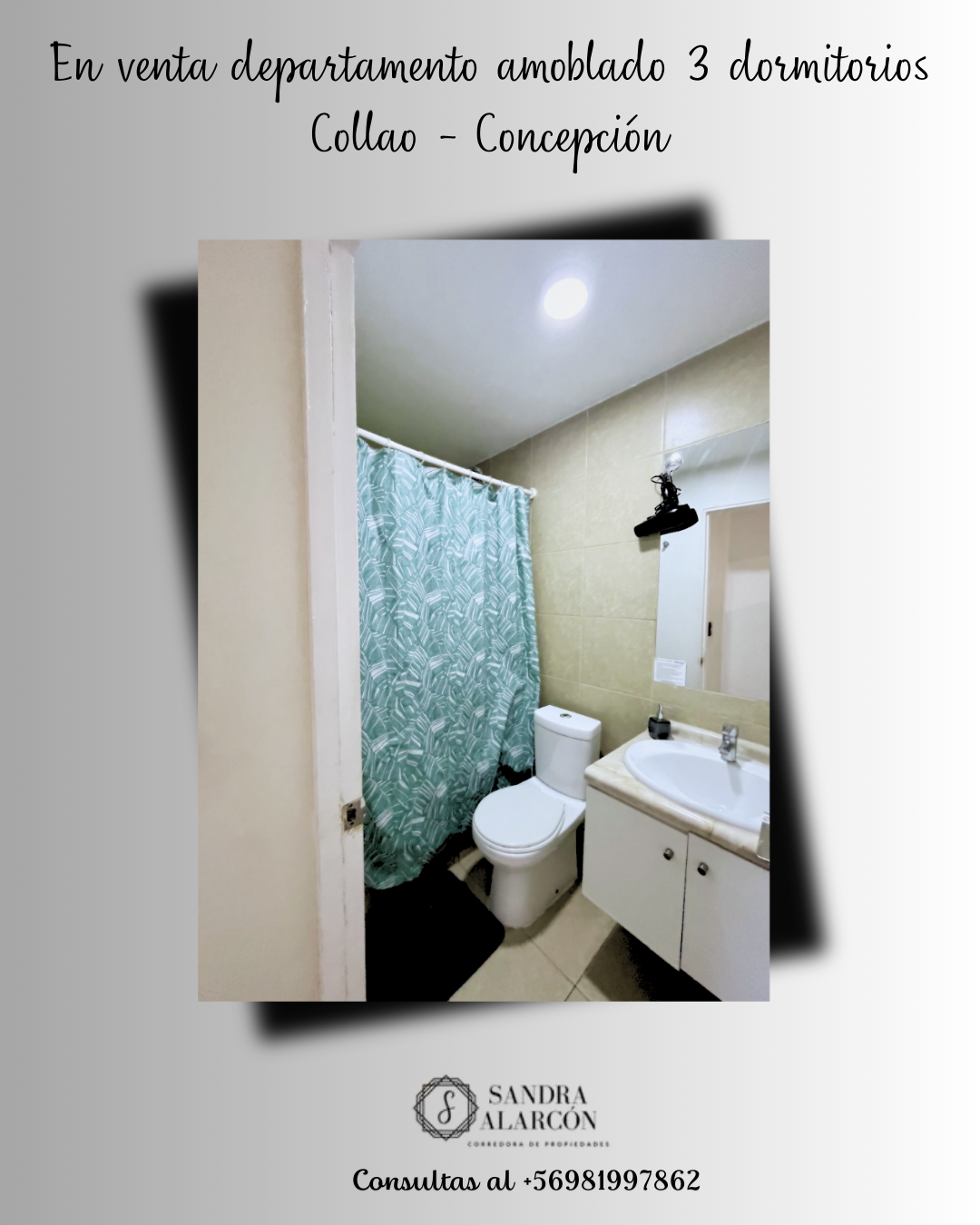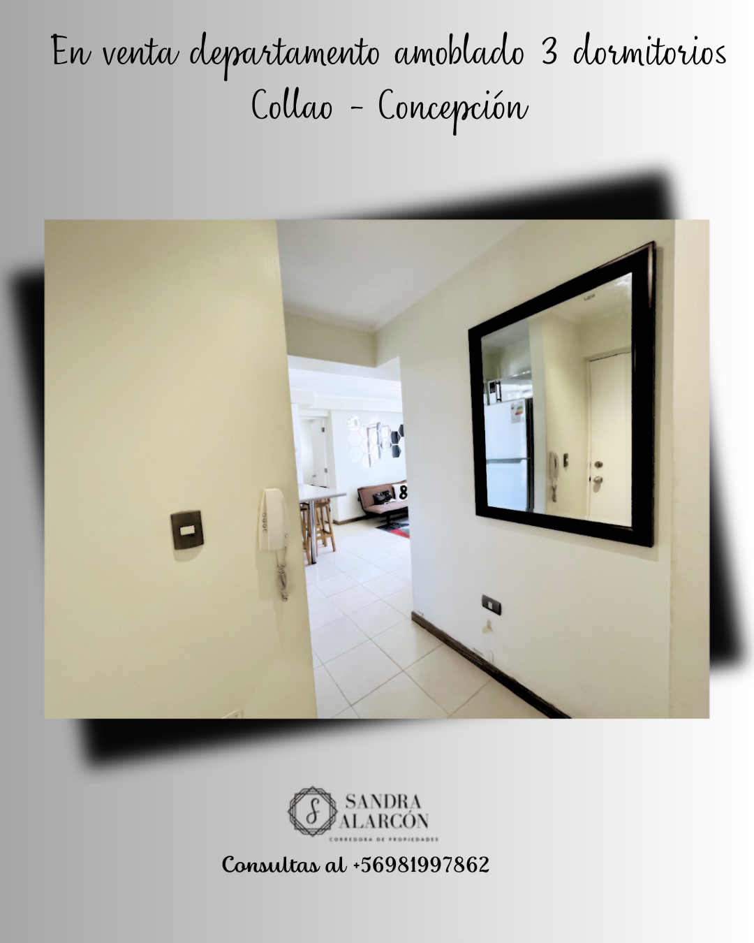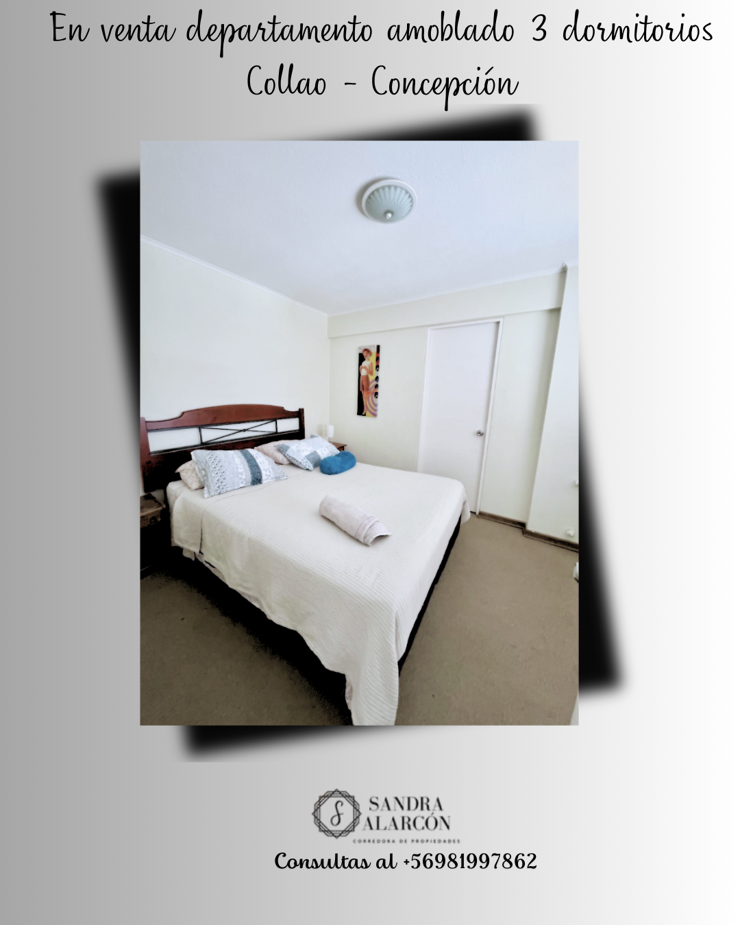 Mayor información comunicarse con Sandra Alarcón al +56 981997862, corredor de propiedades