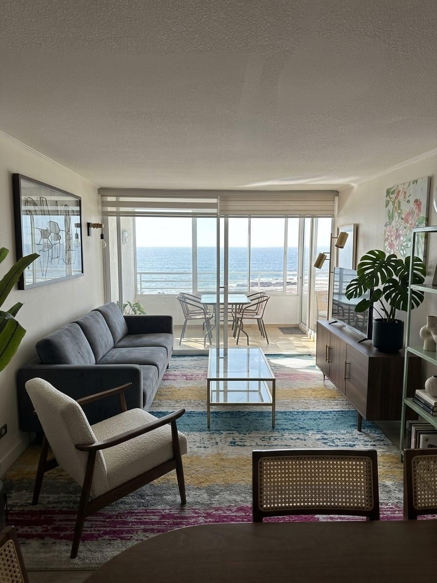 En cuanto a las características diferenciadoras, el edificio garantiza una tranquilidad absoluta mediante un sistema de seguridad con vigilancia controlada las 24 horas. La infraestructura del complejo destaca por su solidez y estética contemporánea, con áreas comunes diseñadas para el bienestar de sus residentes. La amplitud de sus metros construidos se refleja en cada rincón, permitiendo una transición fluida entre la cocina, el living-comedor y las zonas de descanso. La vida en este departamento se ve enriquecida por la brisa marina constante y una iluminación natural privilegiada, factores que elevan significativamente la calidad de vida diaria.