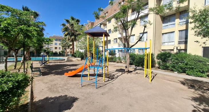 Impecable departamento en 4to piso, vista sur en Quilicura, cerca de metro Lo Cruzat, con toda la urbanización necesaria para satisfacer necesidades básicas como educación, transporte, supermercados. Condominio San Ignacio cuenta con amenidades y bajos gastos comunes.