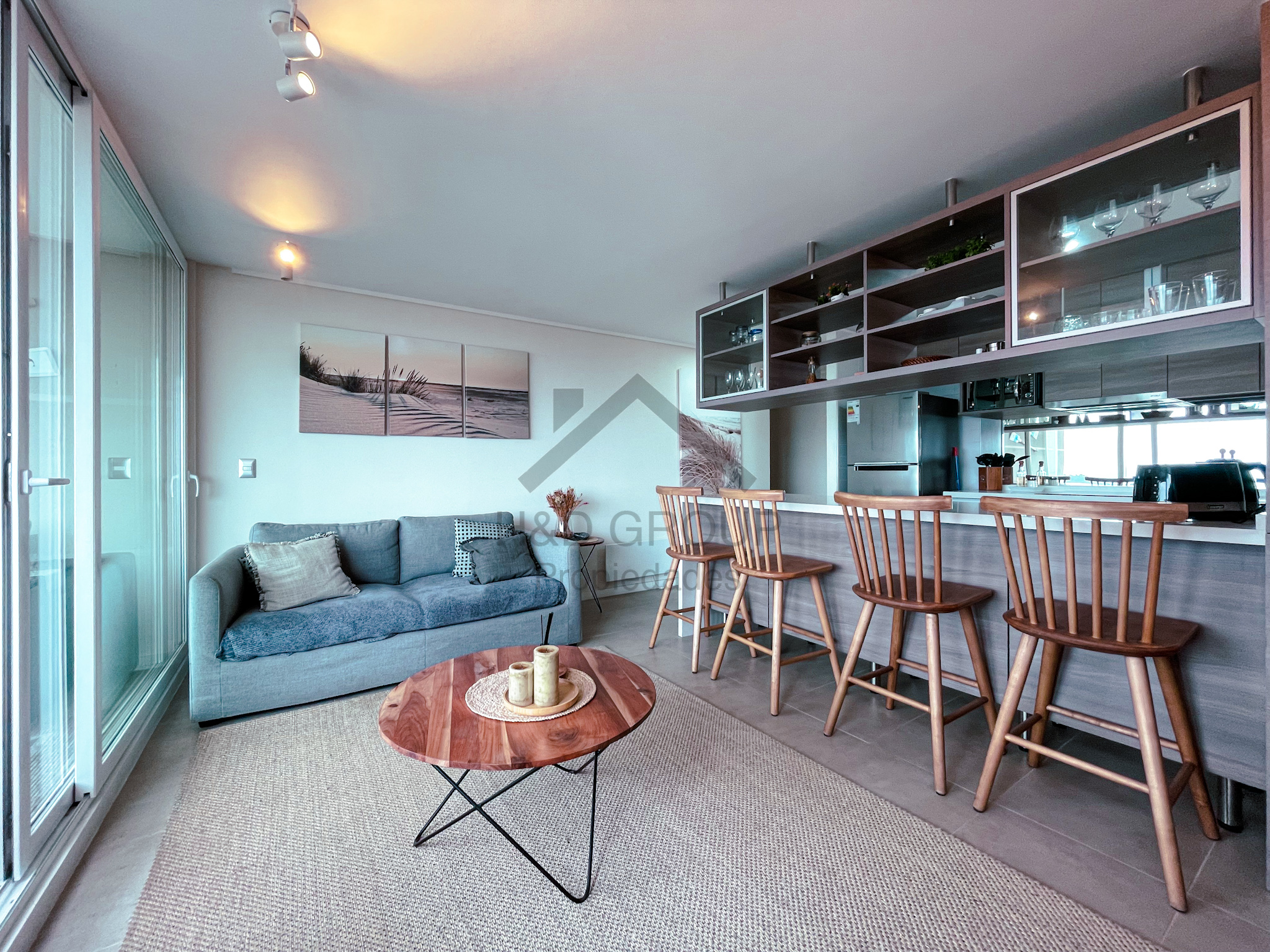 Luminoso departamento de 73 m² con 2 dormitorios, 2 baños, y cómoda terraza con vidrios plegables, ideal para disfrutar de la vista a mar y a los parques.