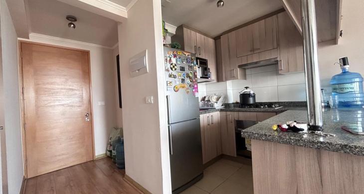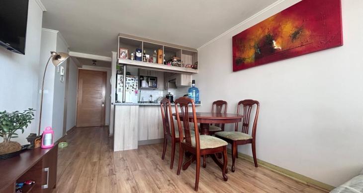 Esta unidad habitacional de 64 metros cuadrados construidos ofrece un espacio equilibrado y funcional, ideal tanto para inversionistas estratégicos como para familias que buscan un hogar listo para habitar. La propiedad cuenta con dos dormitorios amplios y luminosos, destacando el dormitorio principal en suite, diseñado para brindar privacidad y descanso. Los dos baños completos presentan terminaciones contemporáneas y materiales de alta durabilidad, manteniendo el estándar de excelencia de una construcción joven del año 2017. El área social se integra armoniosamente con la cocina, permitiendo una fluidez espacial que aprovecha al máximo la luz natural característica de esta altura.