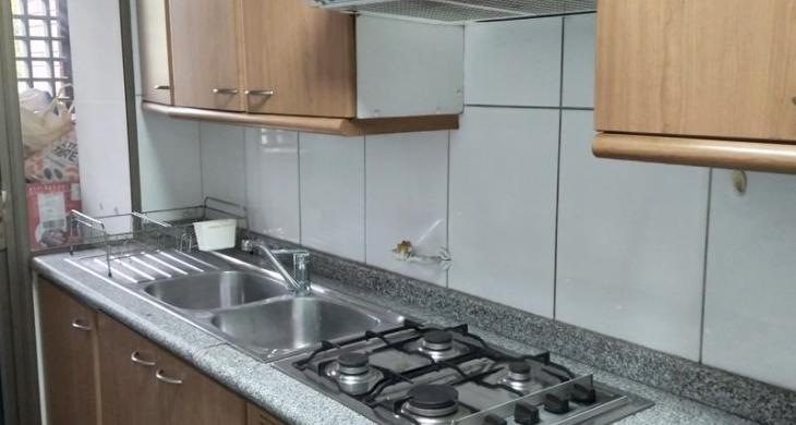 Cocina tradicional amoblada y equipada, mesones de granito, doble lavaplatos, horno, encimera y campana. Cuenta con logia separada, buena ventilación.
