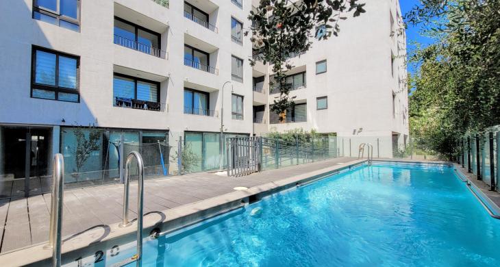 Edificio con acceso controlado las 24 hrs. Equipado con piscina, quincho, sala de eventos, gimnasio, y estacionamientos de visitas.