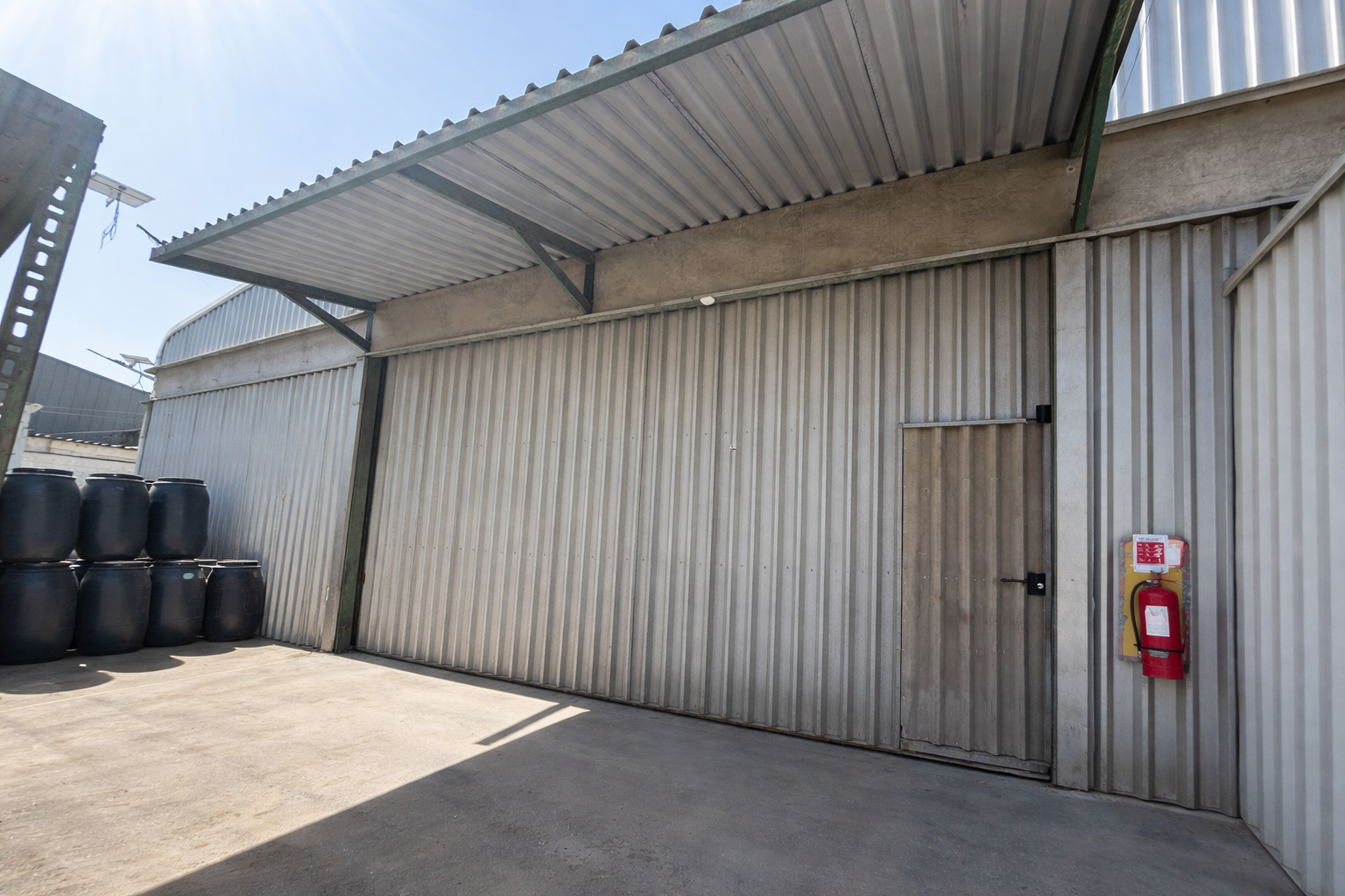 Dentro del recinto también se incluye casa destinada a cuidador, portón de acceso automático y conexión eléctrica trifásica, adecuada para operaciones industriales.
