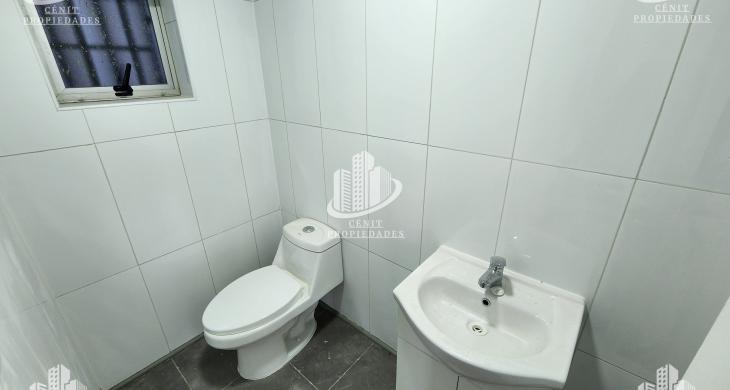 Primer piso: Amplia planta abierta, 2 baños, bodega interior