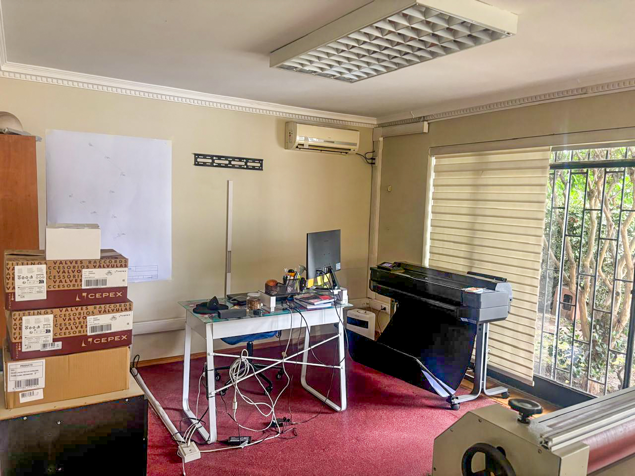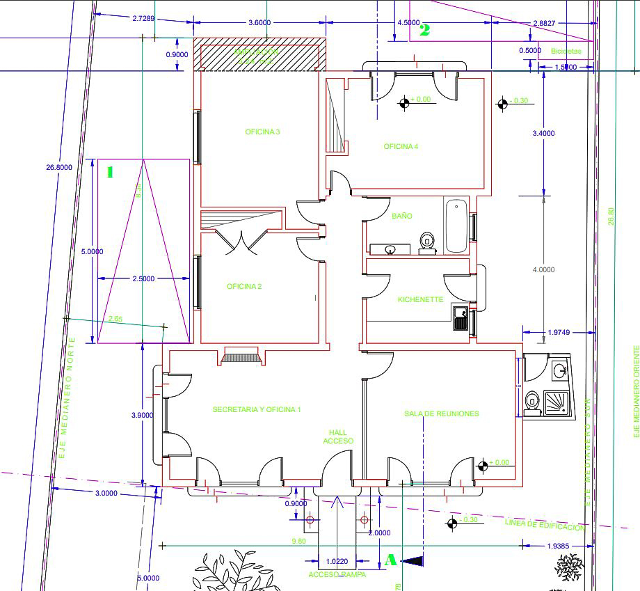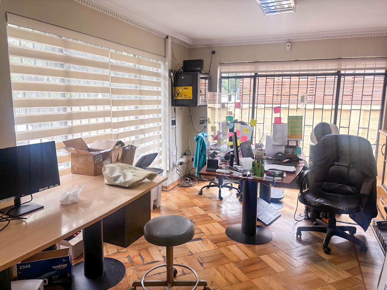 La propiedad posee 4 grandes privados que permiten varios puestos de trabajo, sala de reuniones, kitchenette, 2 baños y desde 4 estacionamientos. Ver imagen de plano de la distribución de espacios. Se permite realizar modificaciones de ser necesario.
