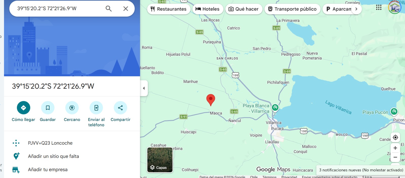 Esta parcela nueva, es una de las 10 que existen en este condominio, tiene empalme de luz, y con factibilidad de agua, ubicada cerca de Maoca, a solo 25 minutos de Villarrica y 30 minutos de pucón, ofrece un acceso inmejorable gracias a su cercanía al asfalto (a solo 200 metros). Imagina despertar cada mañana con la vista a los paisajes incomparables de Villarrica, disfrutando de la privacidad y amplitud que solo un terreno de estas dimensiones puede brindar.