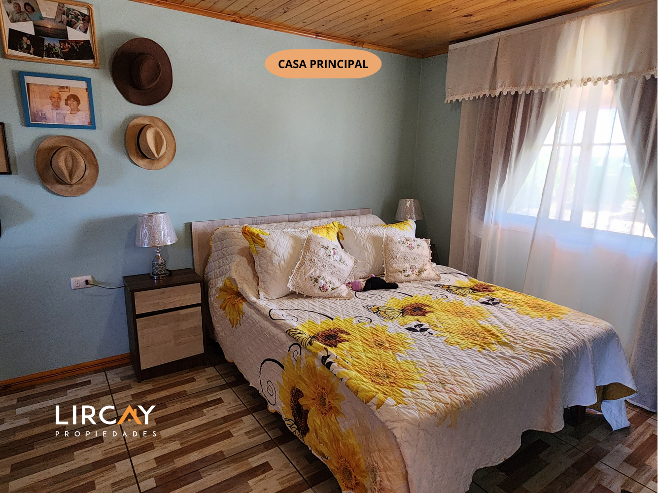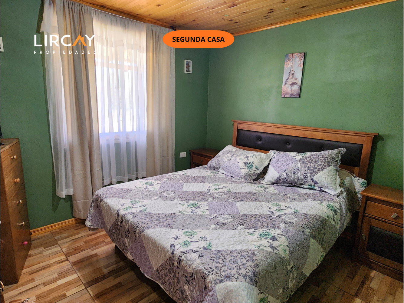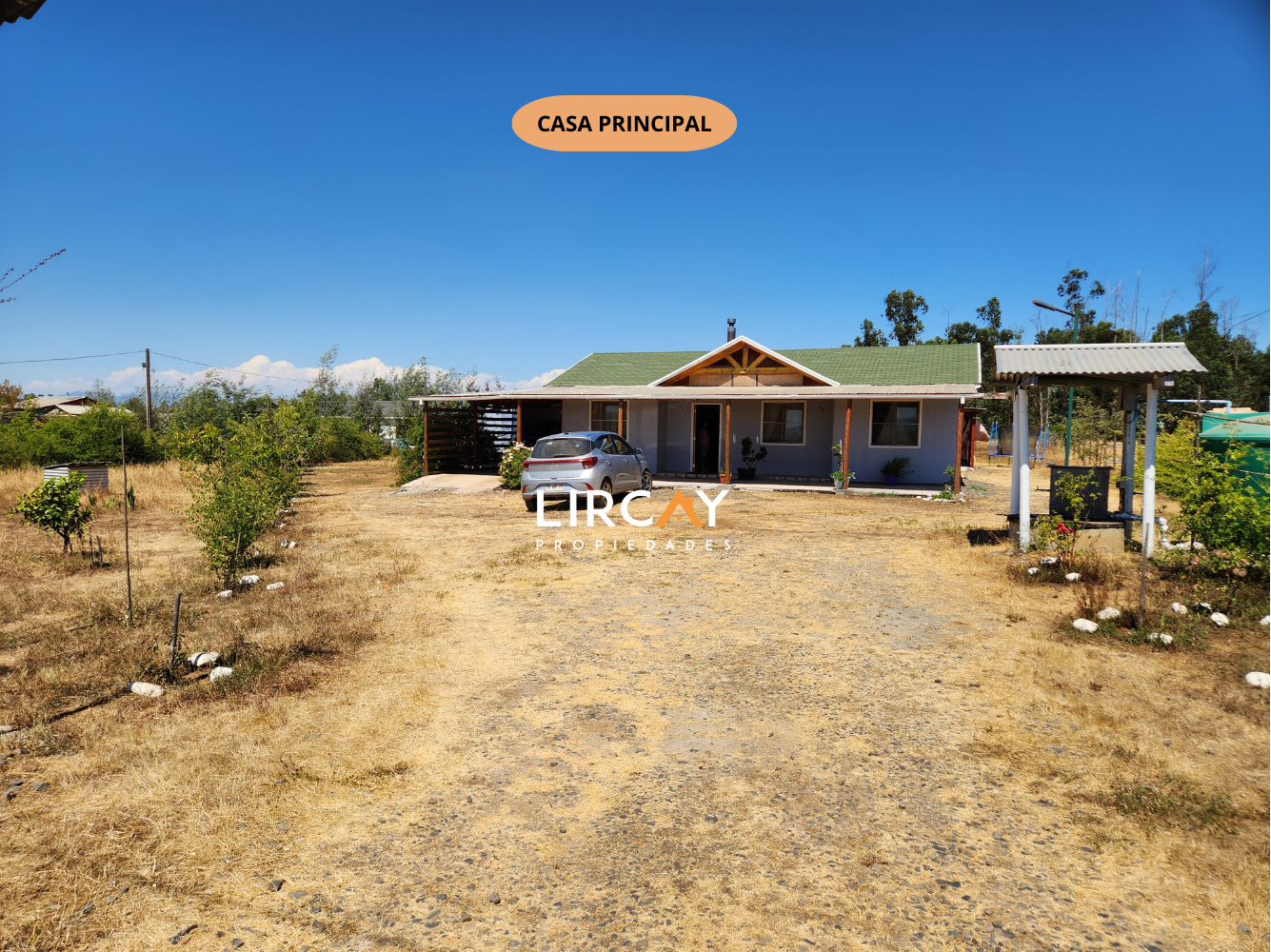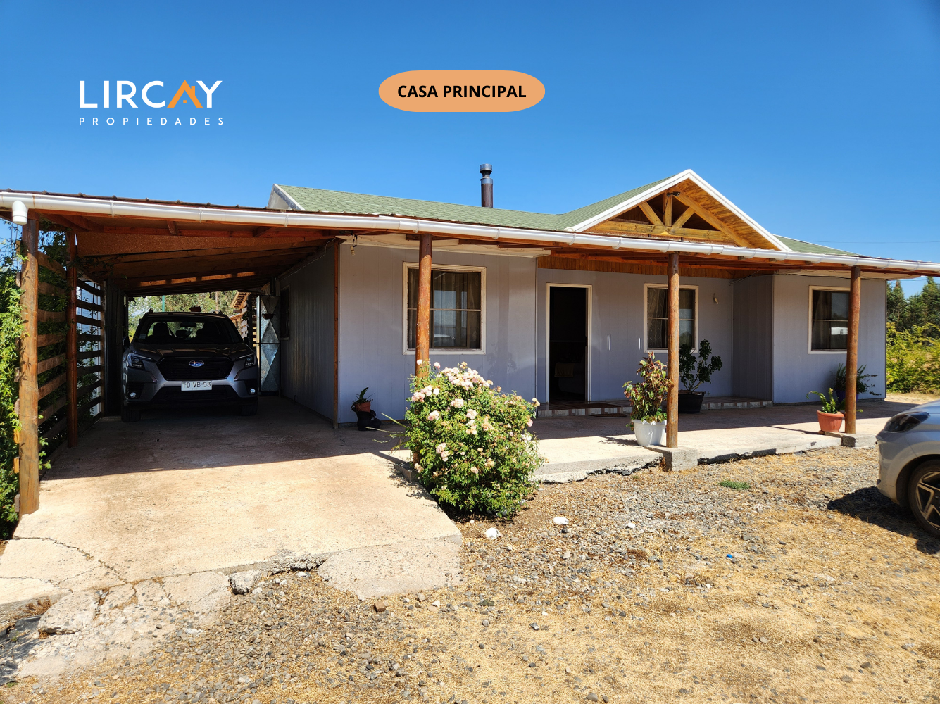Vivienda principal dispone de 2 dormitorios, incluyendo una suite, y 2 baños para mayor comodidad. 75 mts2 de construcción; estacionamiento techado; portón metálico de corredera. Pérgola. Árboles frutales.