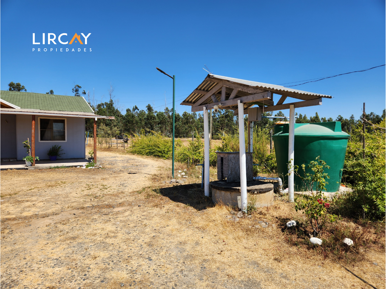 Posee pozo de 30 metros, estanque de 2400 Lts. Luz, internet, Tv satelital.
