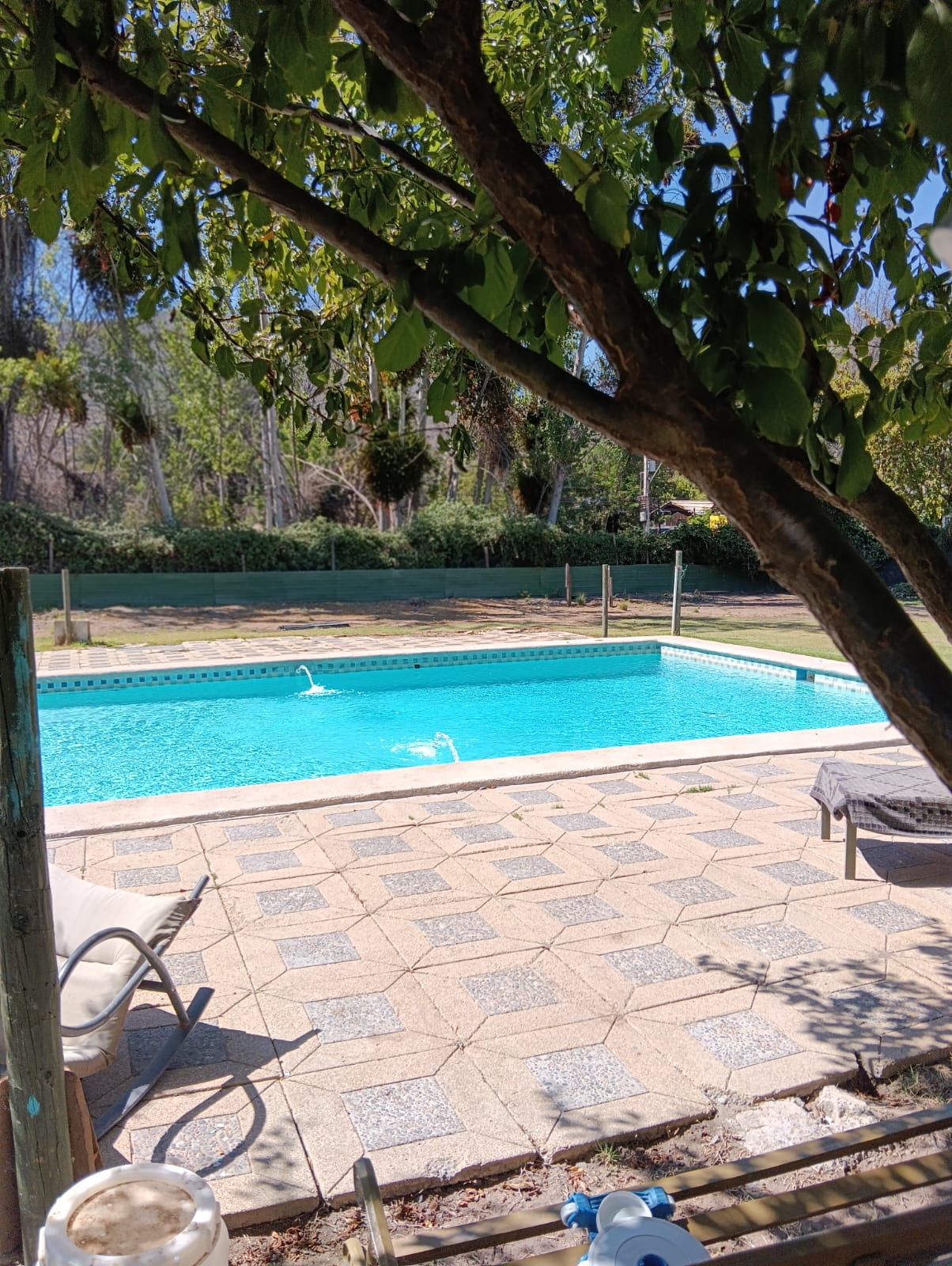 Cierro frontal en reja de fierro y pandereta en cierre poniente. Deslindes interiores con lotes vecinos y hacia Camino Lonquén, con polines de madera y malla galvanizada. Pavimento de acceso en pastelones de hormigón. Piscina de Hormigón ejecutada en terreno, de 6,5 x 9 mt. aprox.. Derechos de aprovechamiento de agua 0,52770 litros por segundo. Terraza y cobertizo metálico