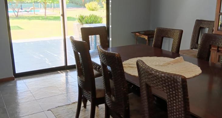 Estas construcción comprende en un nivel y contempla una distribución tipo espejo, con dos sectores similares. Cuenta con dos hall de acceso, dos estar, dos comedores, dos cocinas, una loggia, un patio de servicio, dos baños completos, dos estar familiares, 5 dormitorios simples, uno con baño en suite, y dos dormitorios principales con baño en suite. Uno de estos cuenta además con W. Closet.
