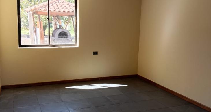 Vivienda cuenta con estructura perimetral y muros divisorios en albañilería reforzada con fundaciones, vigas y pilares de hormigón armado. Techumbre en cerchas de madera con cubierta en tejas tipo colonial o similar. Terminación exterior en pintura sobre estuco rugoso. Al interior presenta muros con pintura sobre enlucido en zonas secas y cerámica completa en zonas húmedas. Pavimento en cerámica en zonas secas y húmedas, exceptuando un dormitorio y w. closet con piso flotante. Cielo en pintura sobre enlucido. Puertas en madera sólida. Ventanas de marcos de aluminio con vidrio simple y termo panel. Closet amoblados. Baños cuentan con artefactos estándar enlozados blancos, más vanitorios. Cocina cuenta con muebles a base y muro con cubiertas post-formada, equipada con lavaplatos. Terrazas pavimento en cerámicos y pastelones de hormigón, estructura de cubierta en acero y madera.