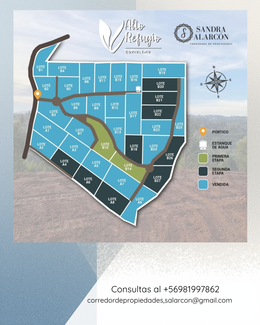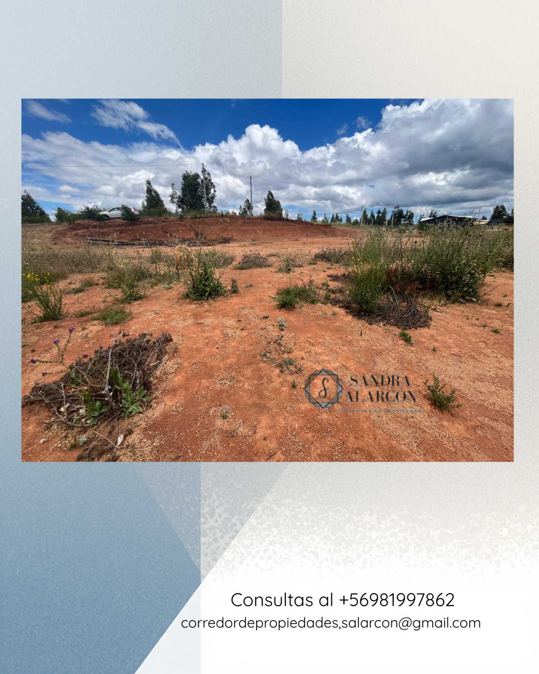 Consultas con Sandra Alarcón, Corredor de Propiedades, al +56 981997862